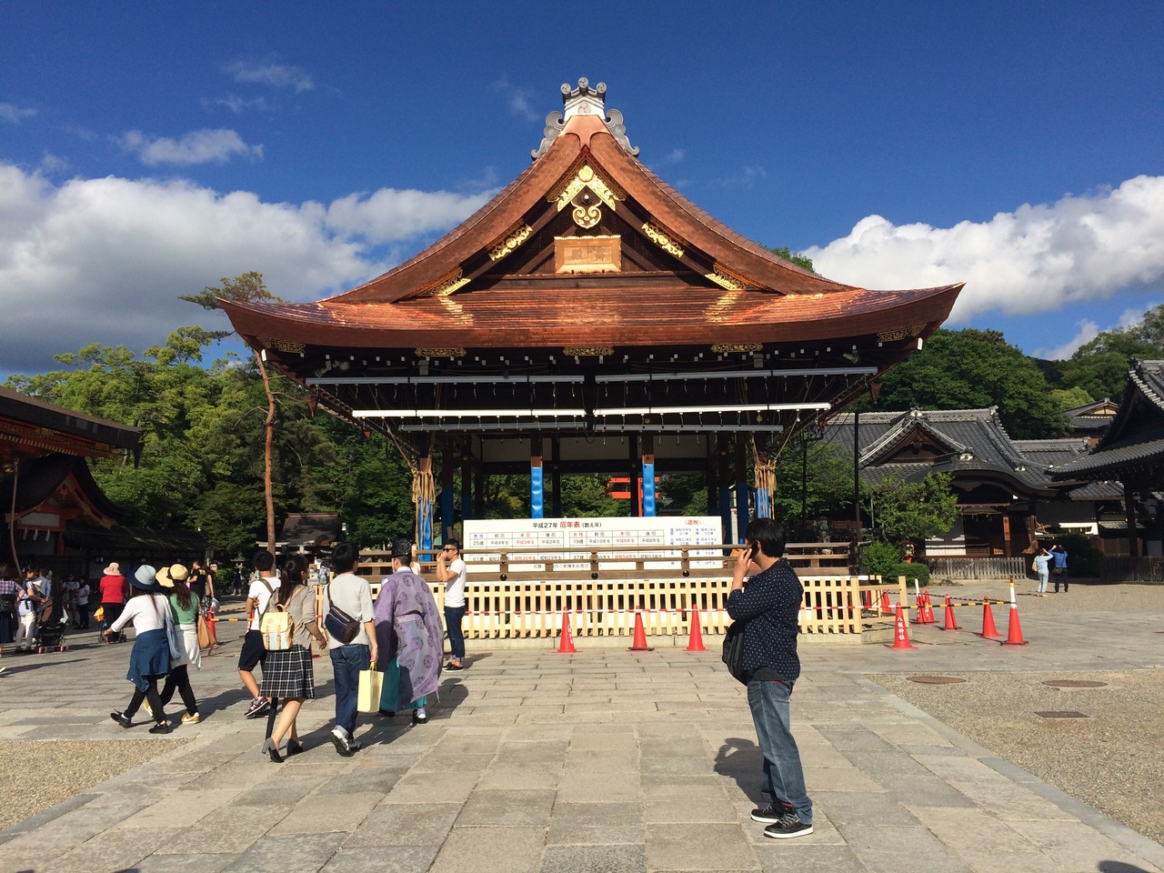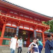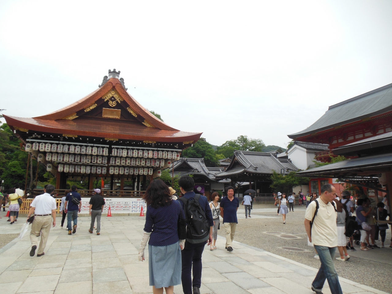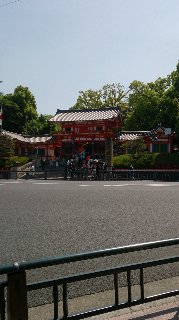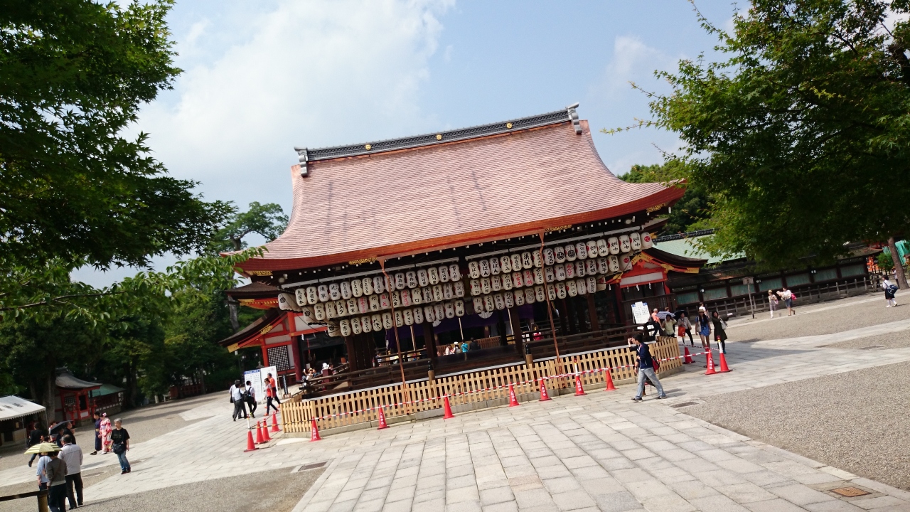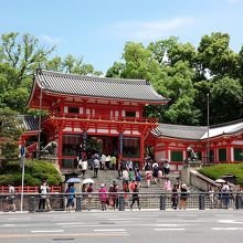 牛頭天王を祀っているようです。 基本的には疫病退散の神社ですが、美人祈願や縁結び、さらには商売繁盛の恵比須様も祀られてい... 続きを読むました。歴史の重みある大絵馬を掲げ、訪れる参拝客を出迎えます。 四条通の突き当りに大きな門がある他、境内南側にも門が据えられていました。円山公園にも隣接しており、多くの人でごった返していました。 閉じる