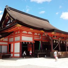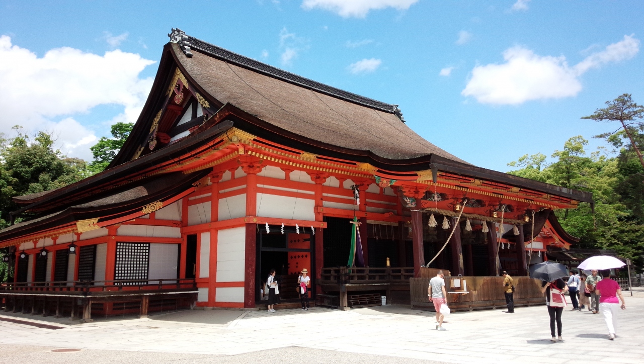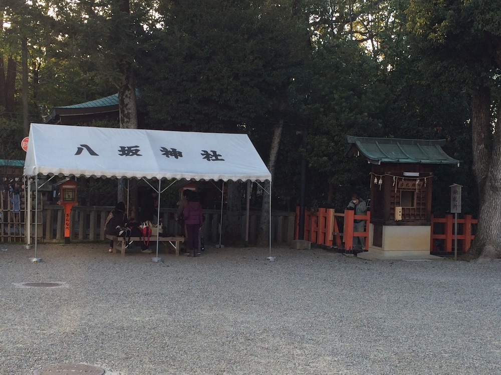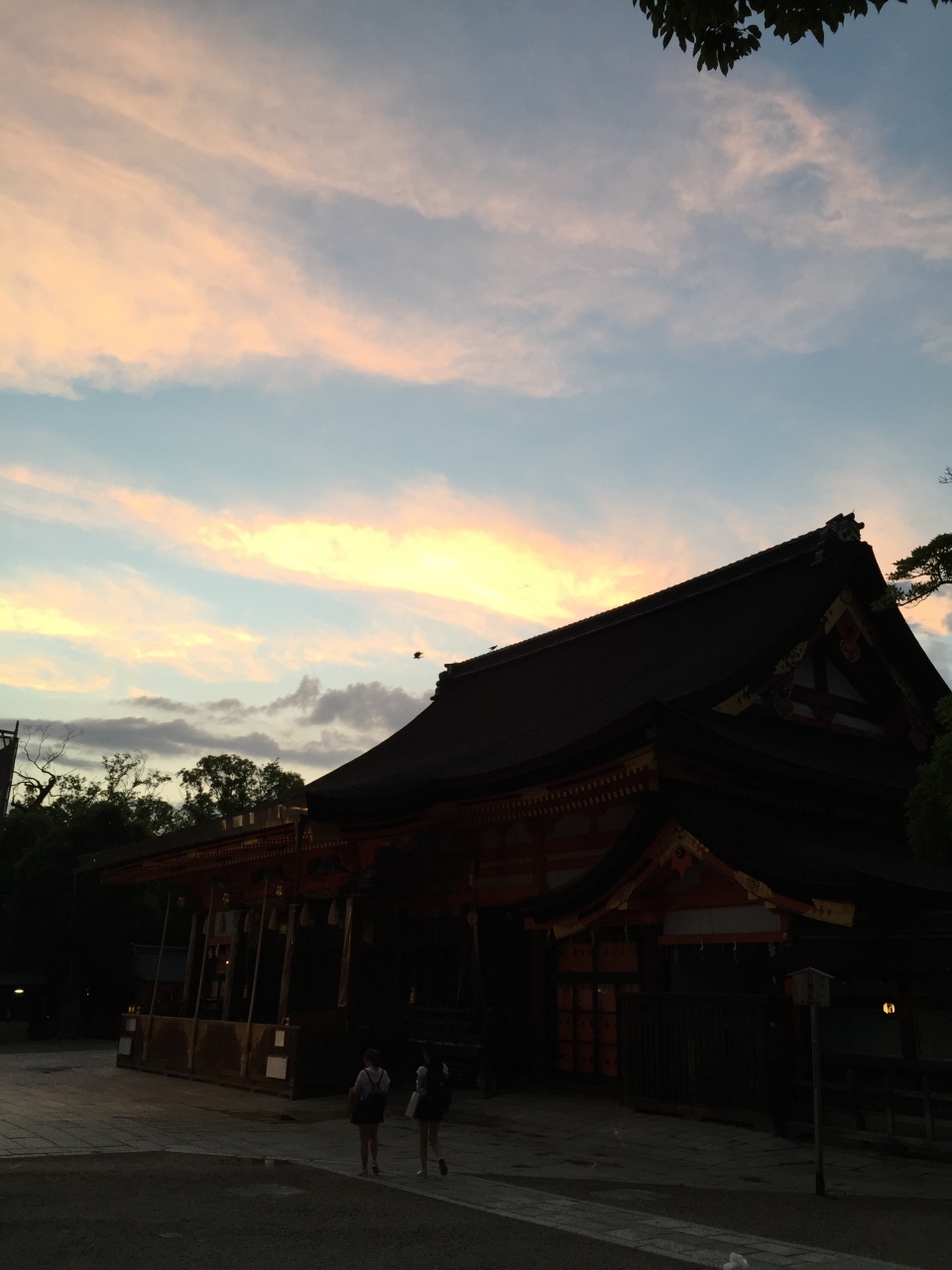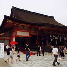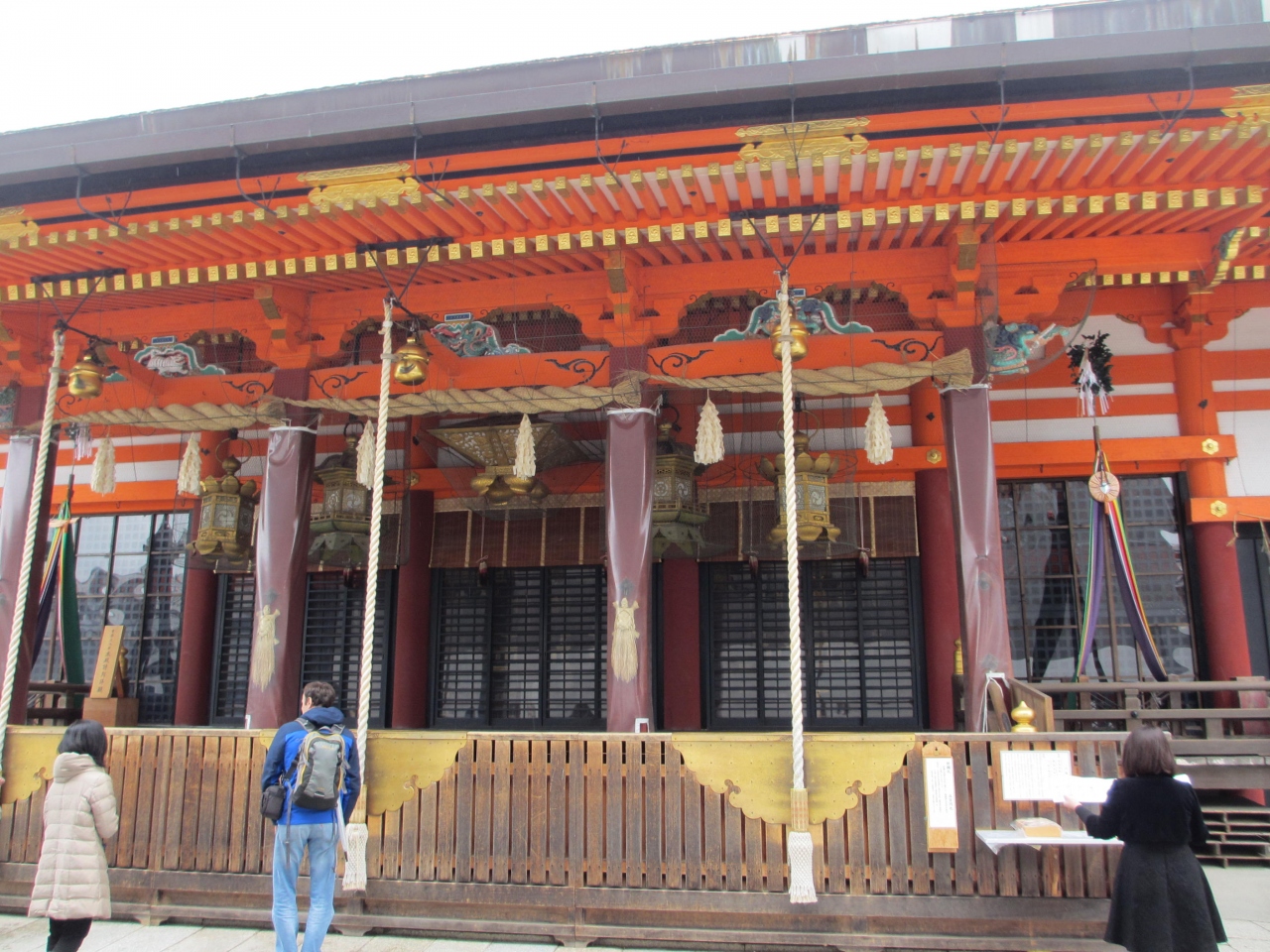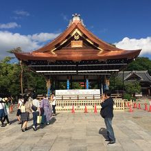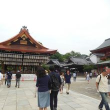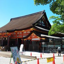 牛頭天王を祀っているようです。 基本的には疫病退散の神社ですが、美人祈願や縁結び、さらには商売繁盛の恵比須様も祀られてい... 続きを読むました。歴史の重みある大絵馬を掲げ、訪れる参拝客を出迎えます。 四条通の突き当りに大きな門がある他、境内南側にも門が据えられていました。円山公園にも隣接しており、多くの人でごった返していました。 閉じる