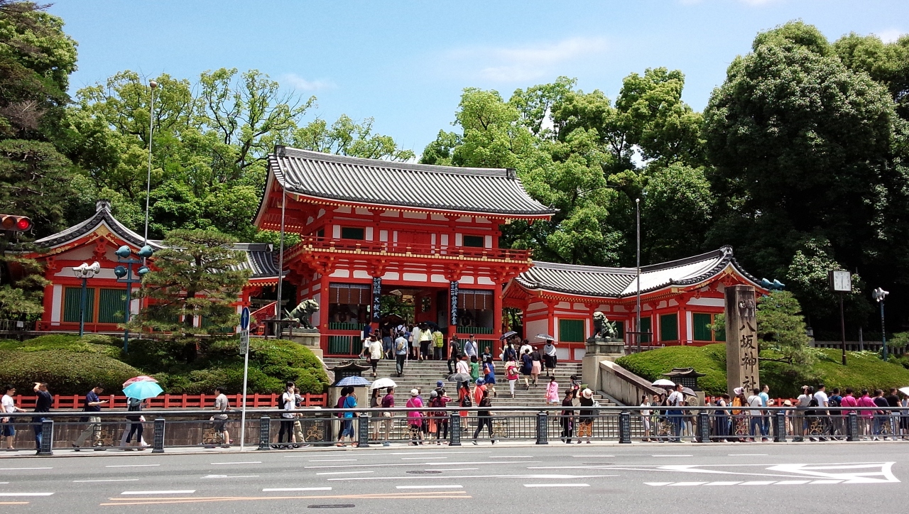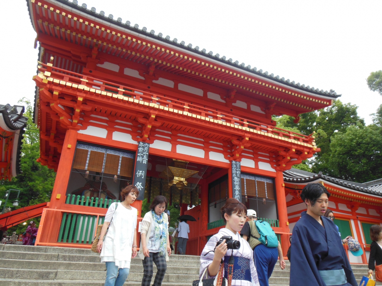 厄除け・縁結びの神、祇園さんの呼び名で親しまれている。日本三大祭のひとつ祇園祭は京都の代表的行事である。師走の風物詩「をけら詣り」も有名。全国の祇園社の総本社。