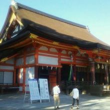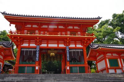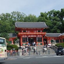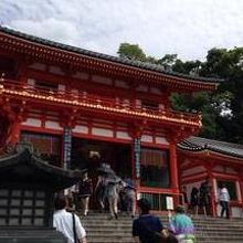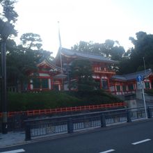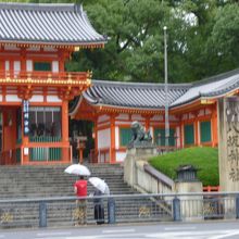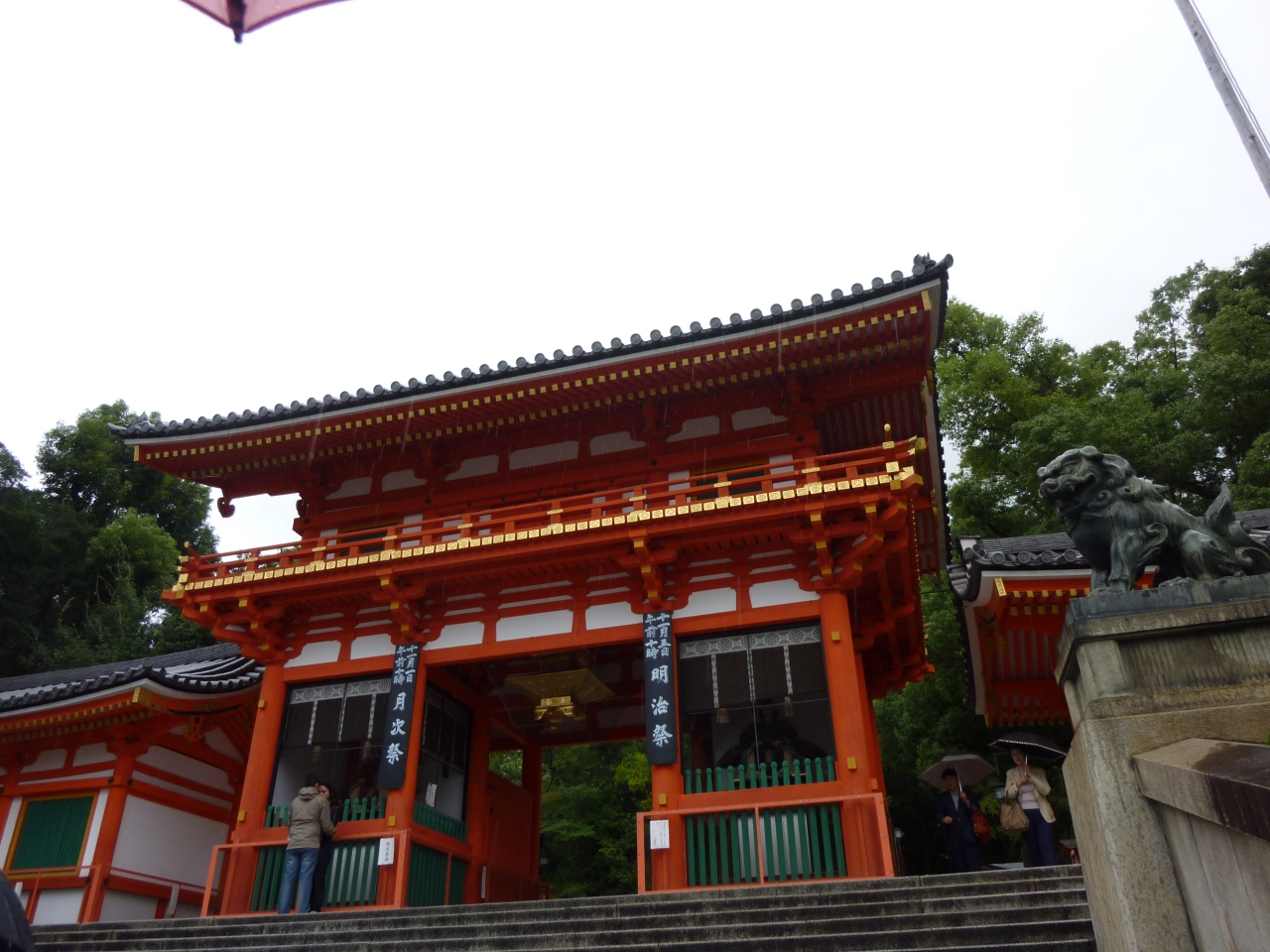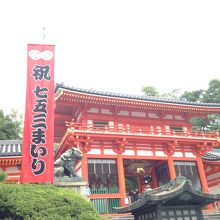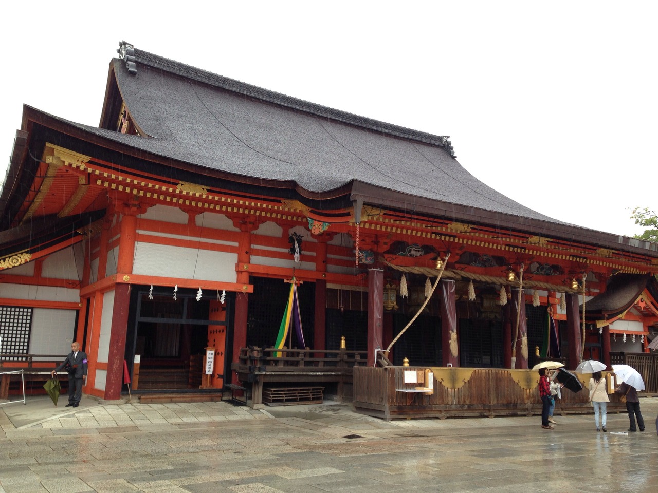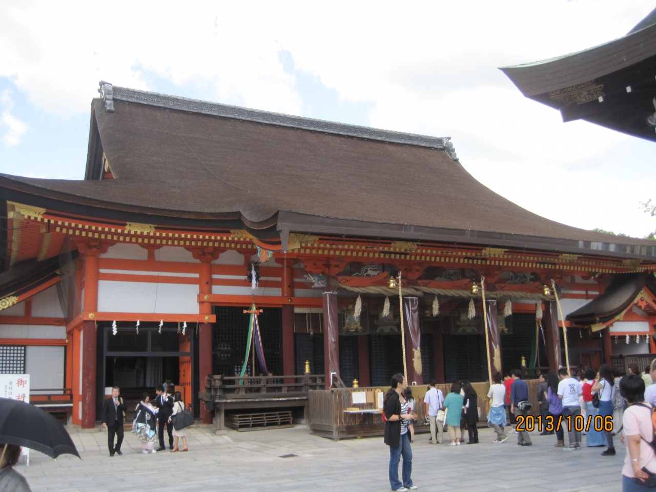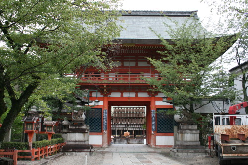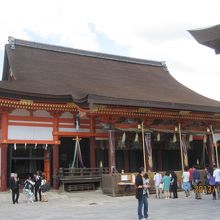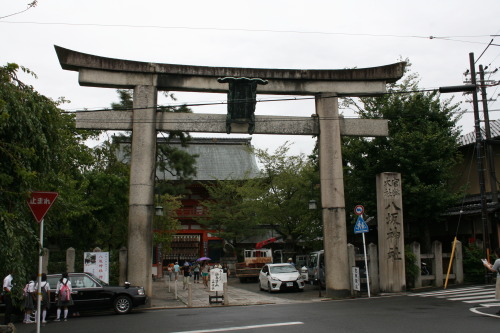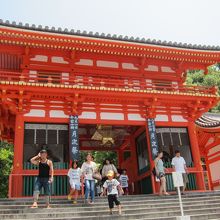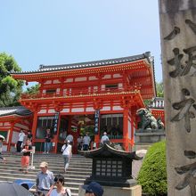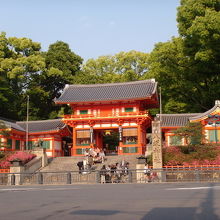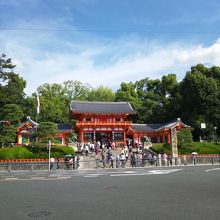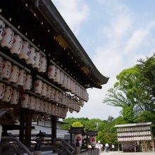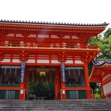 牛頭天王を祀っているようです。 基本的には疫病退散の神社ですが、美人祈願や縁結び、さらには商売繁盛の恵比須様も祀られてい... 続きを読むました。歴史の重みある大絵馬を掲げ、訪れる参拝客を出迎えます。 四条通の突き当りに大きな門がある他、境内南側にも門が据えられていました。円山公園にも隣接しており、多くの人でごった返していました。 閉じる