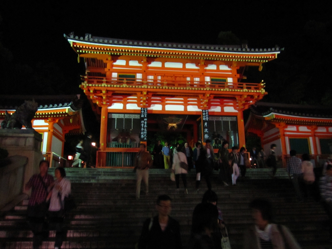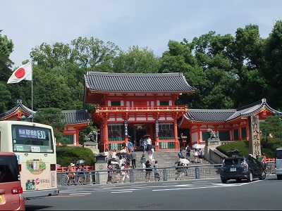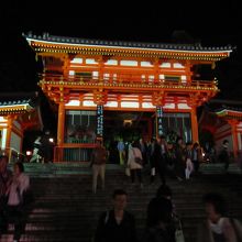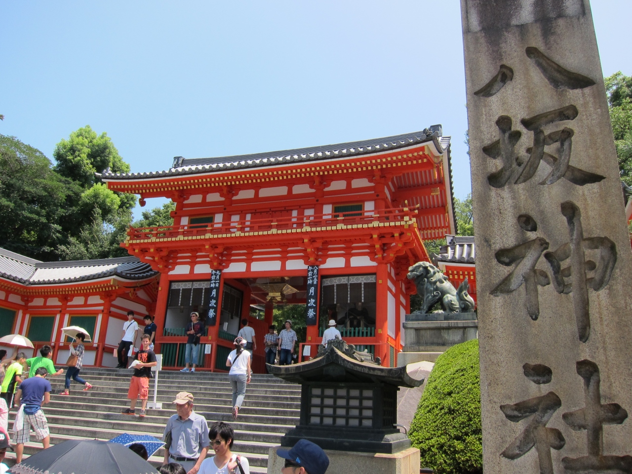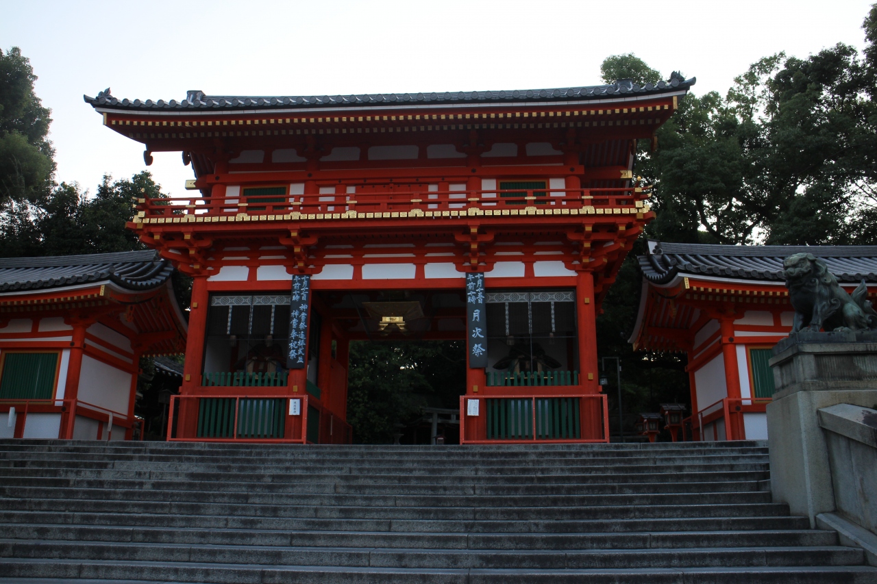 厄除け・縁結びの神、祇園さんの呼び名で親しまれている。日本三大祭のひとつ祇園祭は京都の代表的行事である。師走の風物詩「をけら詣り」も有名。全国の祇園社の総本社。