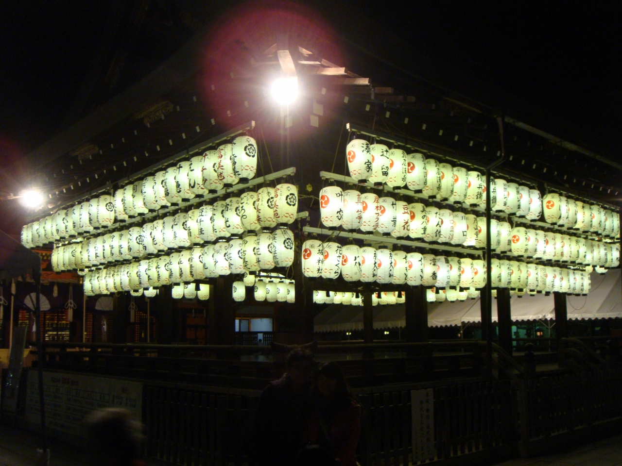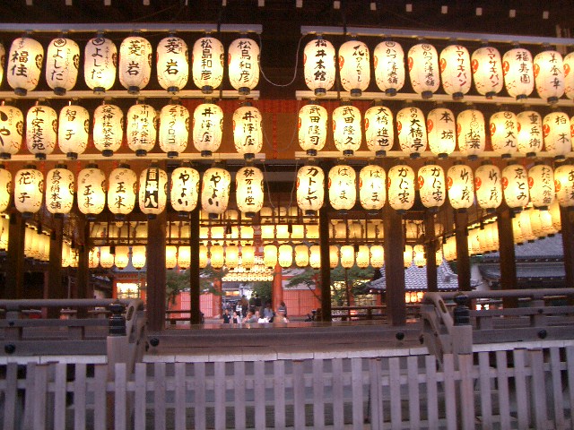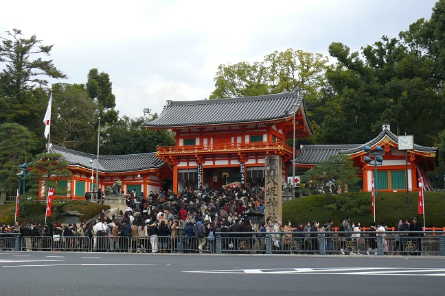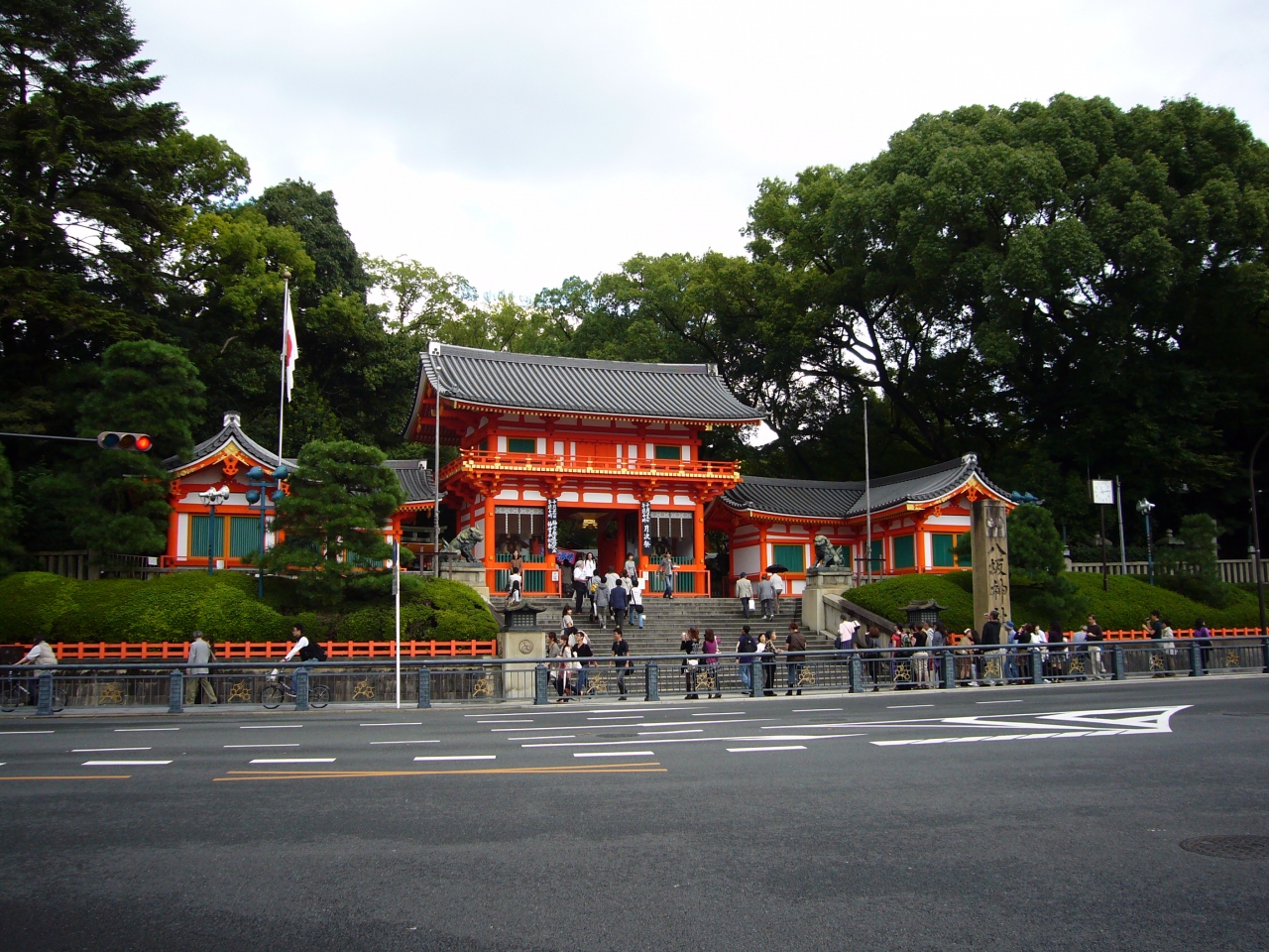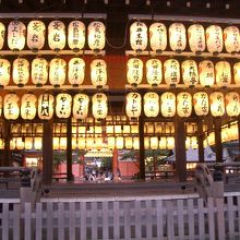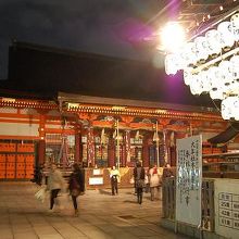 厄除け・縁結びの神、祇園さんの呼び名で親しまれている。日本三大祭のひとつ祇園祭は京都の代表的行事である。師走の風物詩「をけら詣り」も有名。全国の祇園社の総本社。