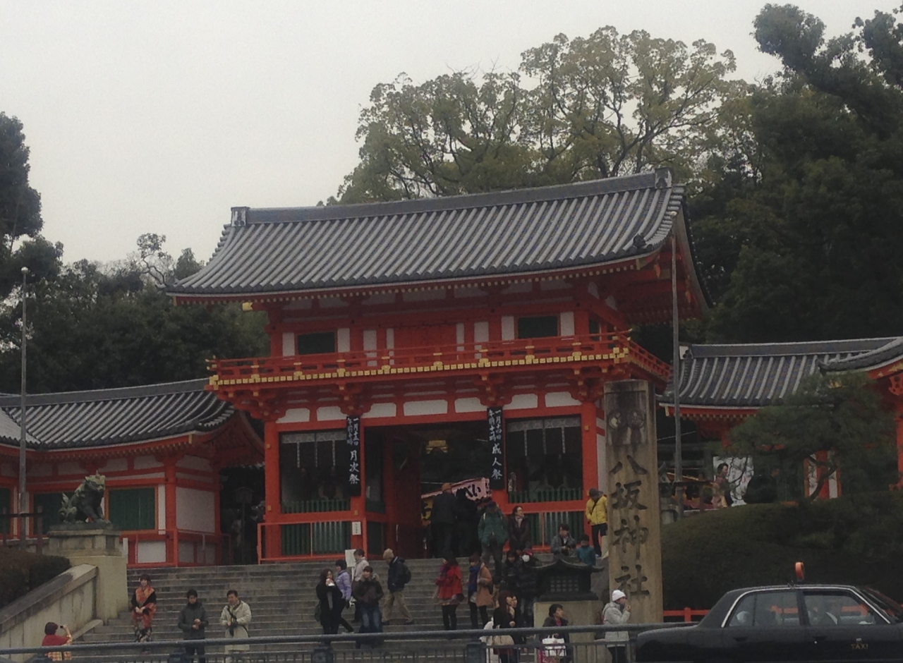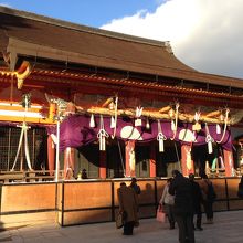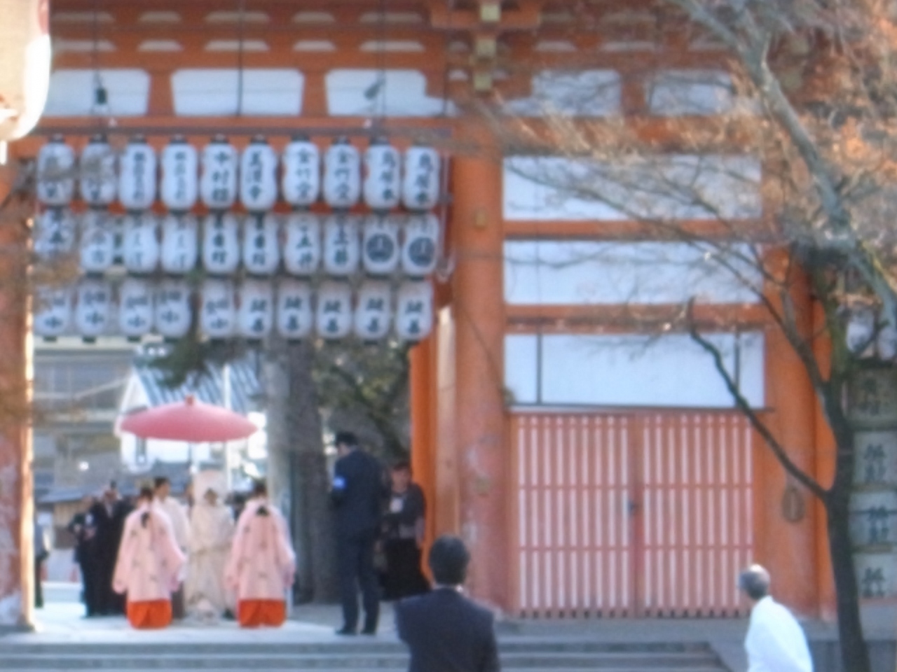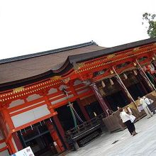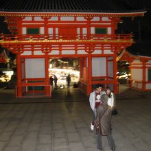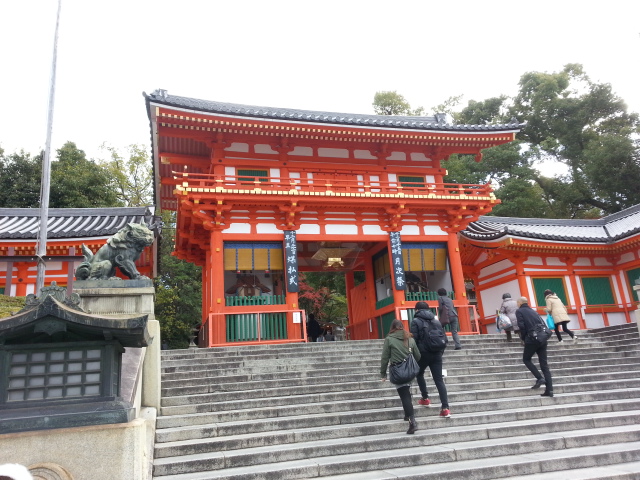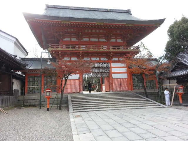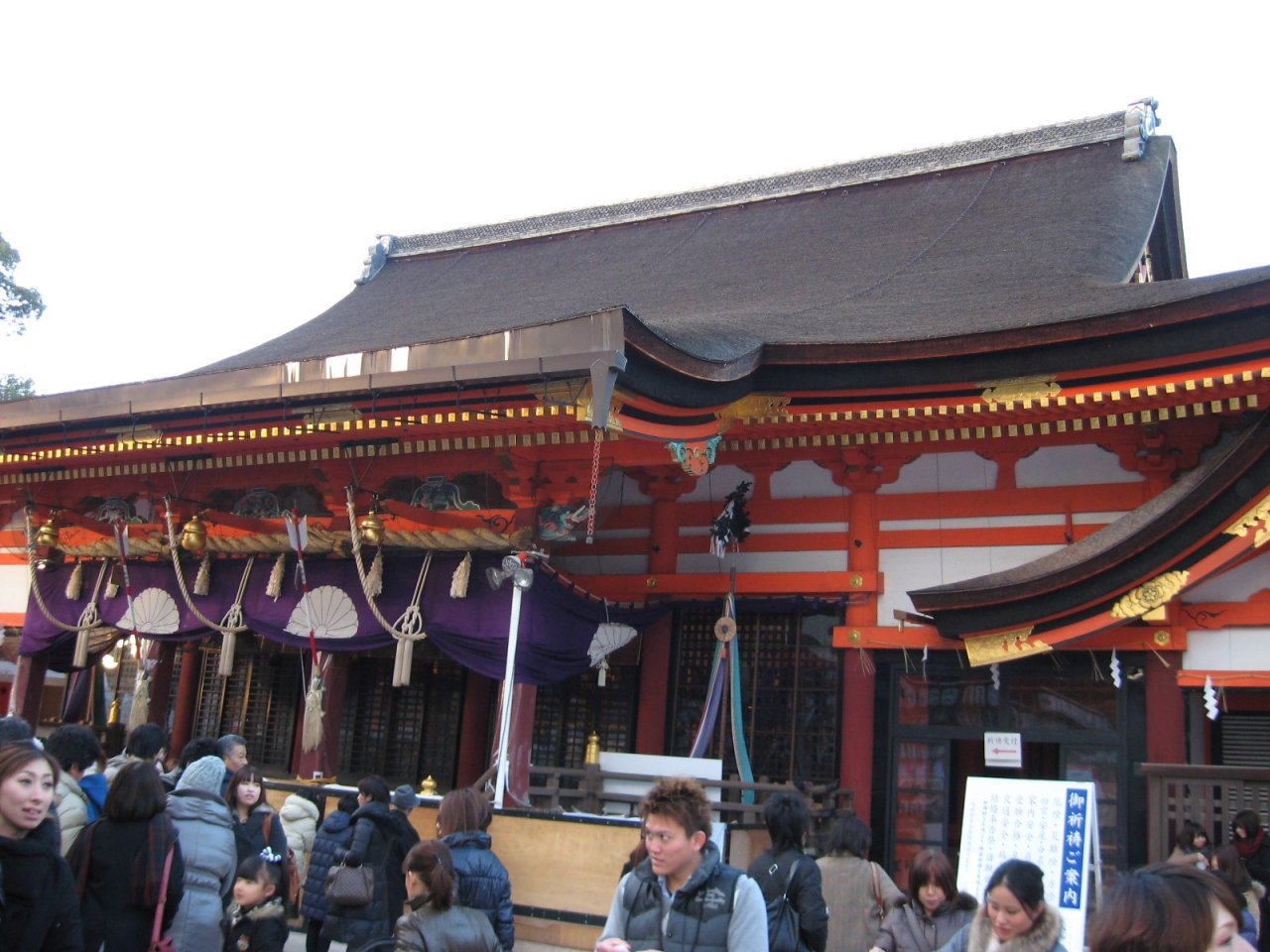 牛頭天王を祀っているようです。 基本的には疫病退散の神社ですが、美人祈願や縁結び、さらには商売繁盛の恵比須様も祀られてい... 続きを読むました。歴史の重みある大絵馬を掲げ、訪れる参拝客を出迎えます。 四条通の突き当りに大きな門がある他、境内南側にも門が据えられていました。円山公園にも隣接しており、多くの人でごった返していました。 閉じる