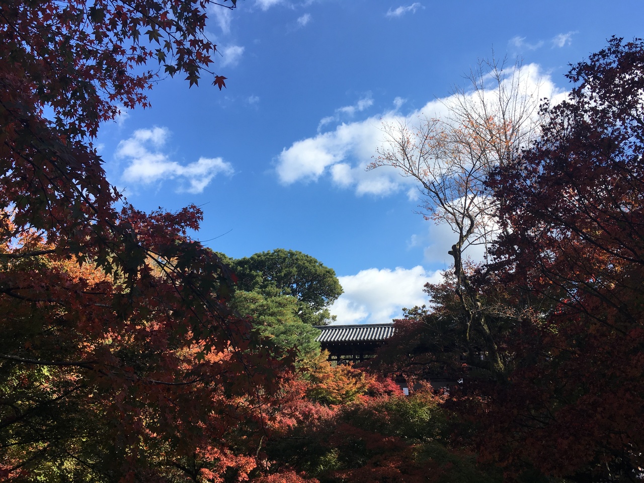 京都を訪れたのが紅葉真っ盛りの少し前だったので、東福寺通天橋の圧巻の紅葉とはいきませんでしたが、その雰囲気は想像できる風景... 続きを読むでした。智積院、泉涌寺、東福寺とゆっくり時間をかけて歩いてみました。京都祇園橋辺りから比べたらほんとに静かでゆっくり楽しむことができます。周りには沢山のお寺があり、1つ1つとても趣があり軒を出してお土産など売っていたり京料理のみせがあったりする。臥雲橋から通天橋を眺めてから通天橋を渡って見ると良い。紅葉が折り重なって雲海のようです。境内は広く蒼龍図(修復中でした)、三門、方丈の庭園見所は沢山ありそれぞれのクチコミが出ているので参考に。元興寺受け付けえり足には、お土産や飲食の出店などたくさん出ていた。 閉じる