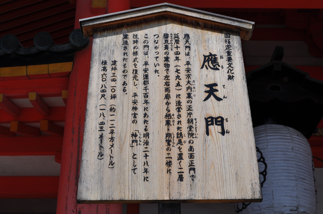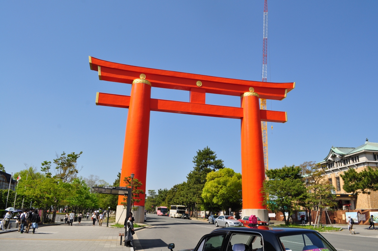 平安神宮の應天門から南に200メートルほどの場所に大きな鳥居があります。場所は京都市美術館と京都国立近代美術館の間になりま... 続きを読むす。平安神宮が創建された1895年につくられたものだとばかり思っていたのですが、調べてみると平安神宮に相応しい鳥居の材料がなかったため、平安神宮創建後も30年ほど鳥居が無い状態が続いていたそうです。それが技術の進歩により鉄骨鉄筋コンクリートで造れることになり、昭和天皇の即位に合わせて1928年に造られたそうです。それにしても本殿が出来たのに鳥居が無い状態が30年も続いていたとはなかなか興味深い歴史ですね。鳥居自体は青空によく映える美しい朱色をしていて、見ごたえがあって良かったです。 閉じる