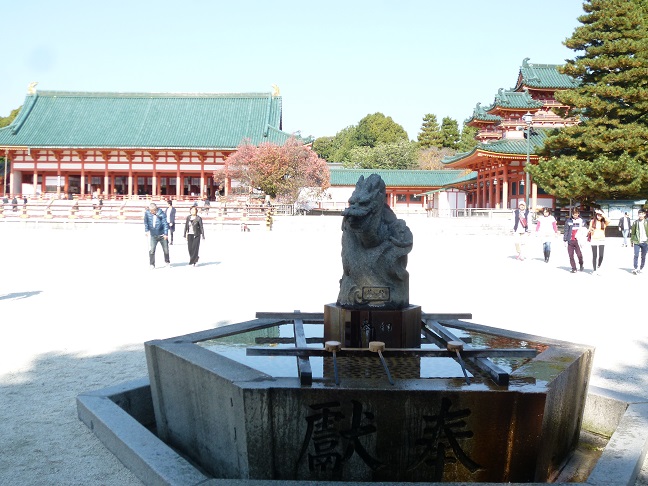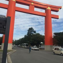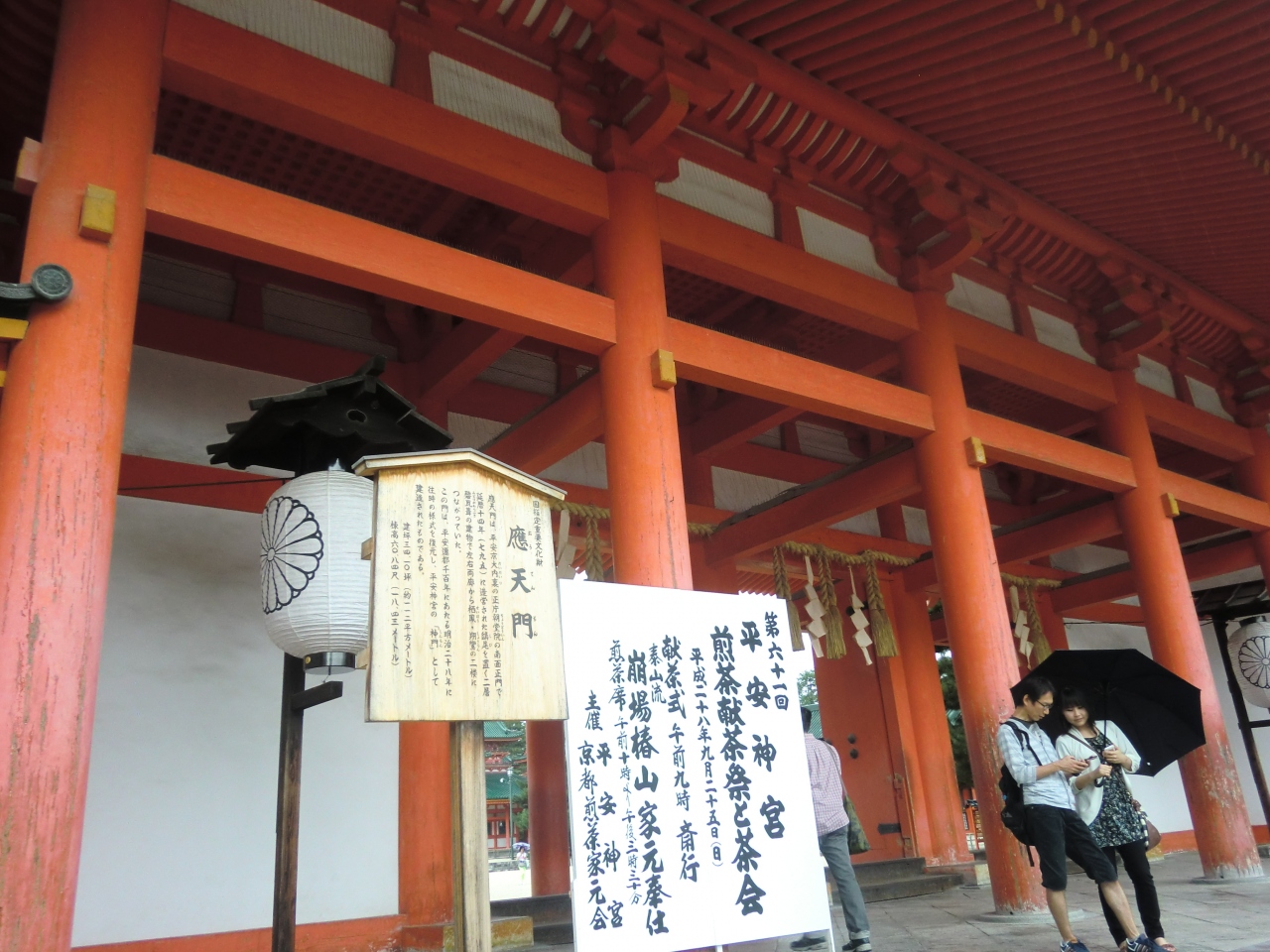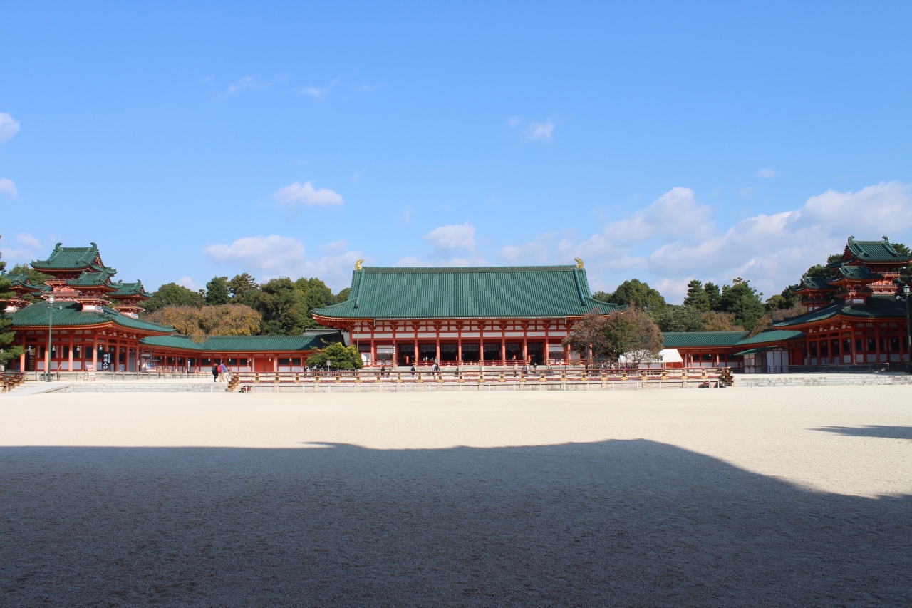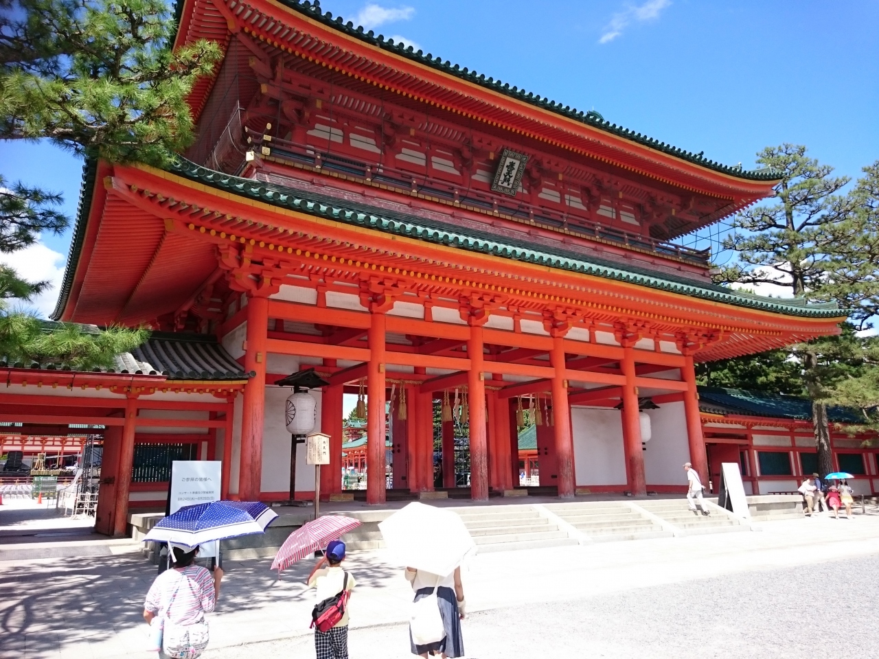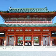 ここが平安神宮の正門となります。平安京遷都1100年を記念して建てられたものですから、そう古くはありません。京都の観光スポットとしては欠かせない場所です。