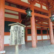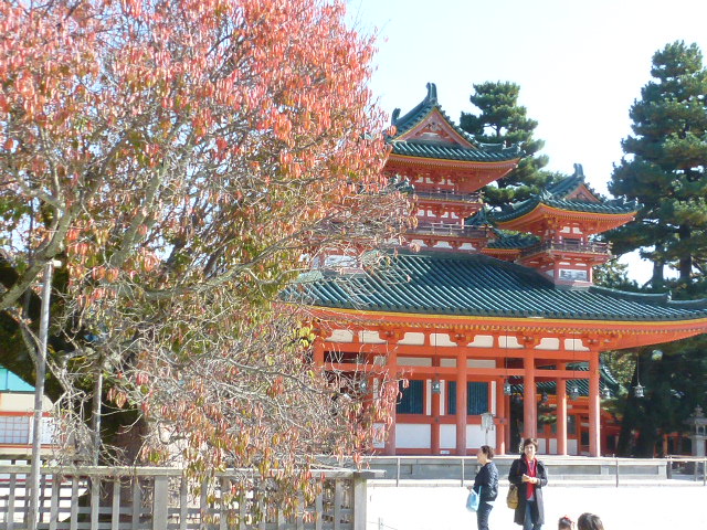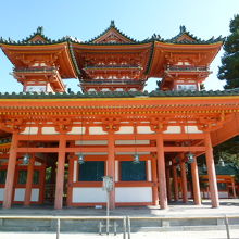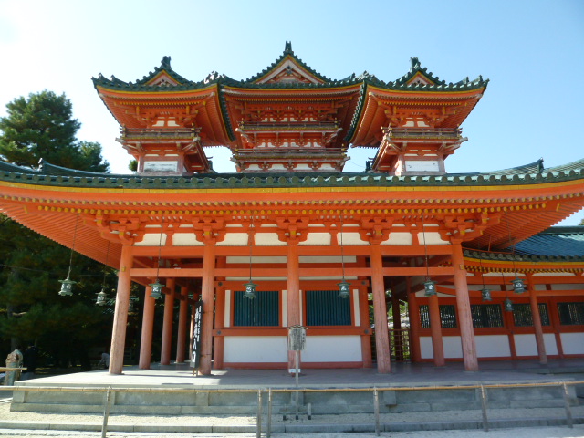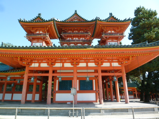 さぁー應天門を通って中へ入ってみましょう。真正面に見えるのが大極殿で、周囲を見ると見事な朱塗りの回廊か続き、素晴らしい光景を観ることができます。