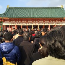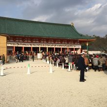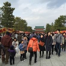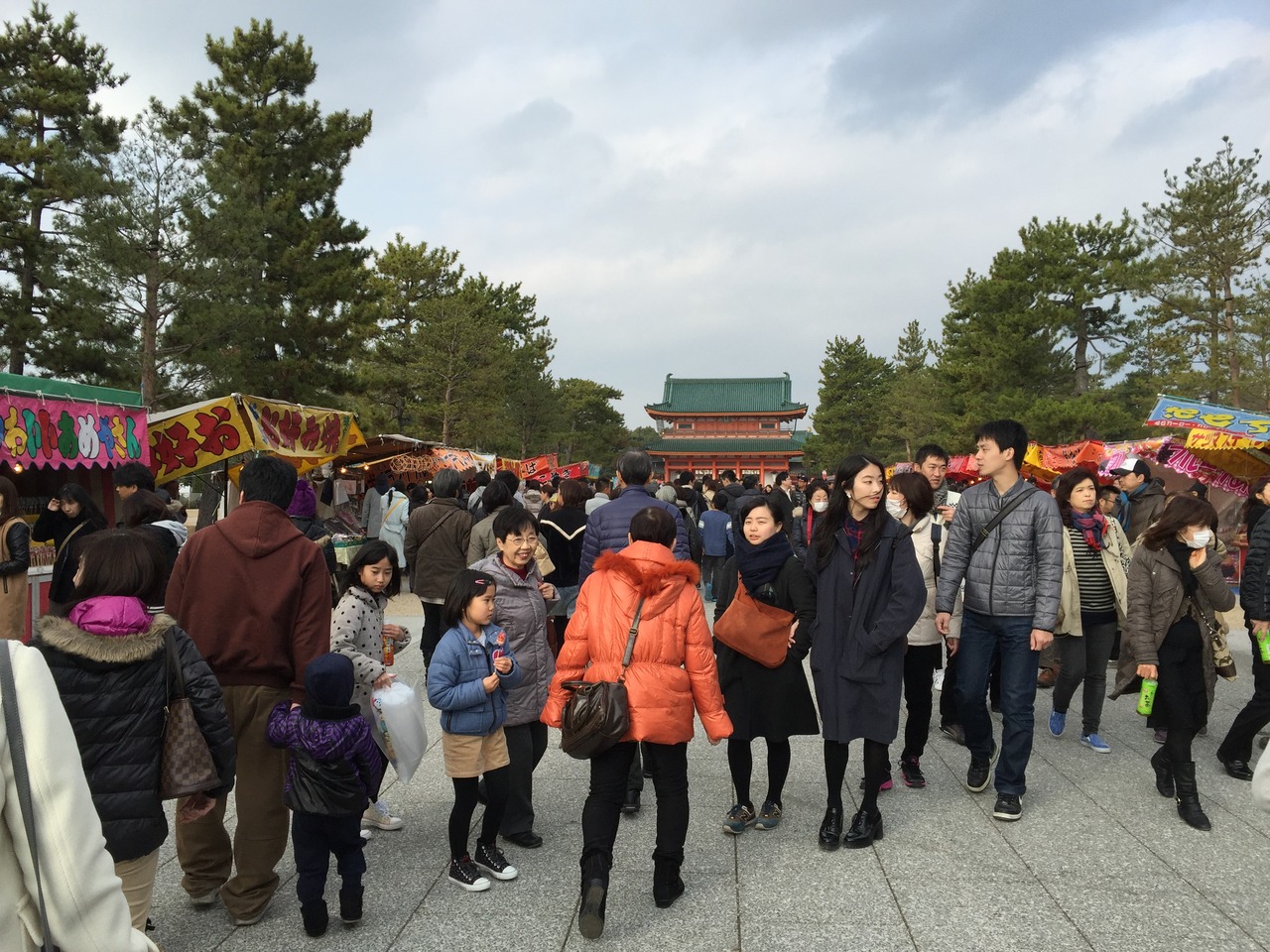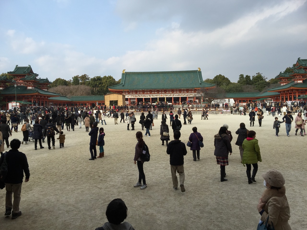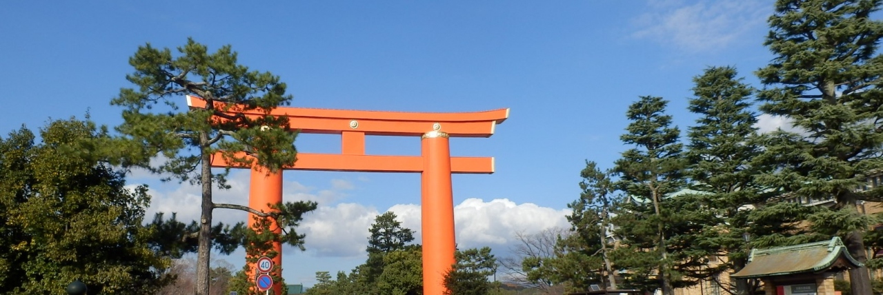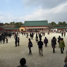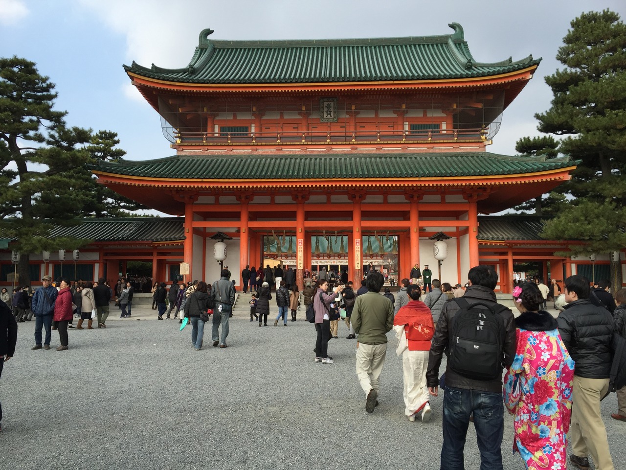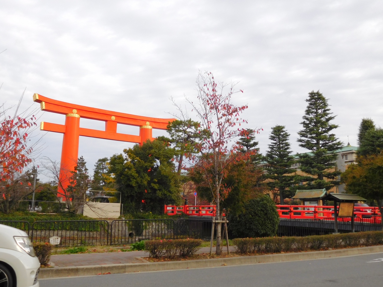 1895年、平安遷都1100年を記念して創建された神社。24mの高さがあり、国の登録有形文化財になっている大鳥居が神宮道をまたぐ。鮮やかな朱色と緑に塗りわけられた社殿は、朝堂院を模している。広大な庭園には珍しい鳥類や、甲羅に草を生やすミノガメ、本州では珍しい南石亀などが生息する。
