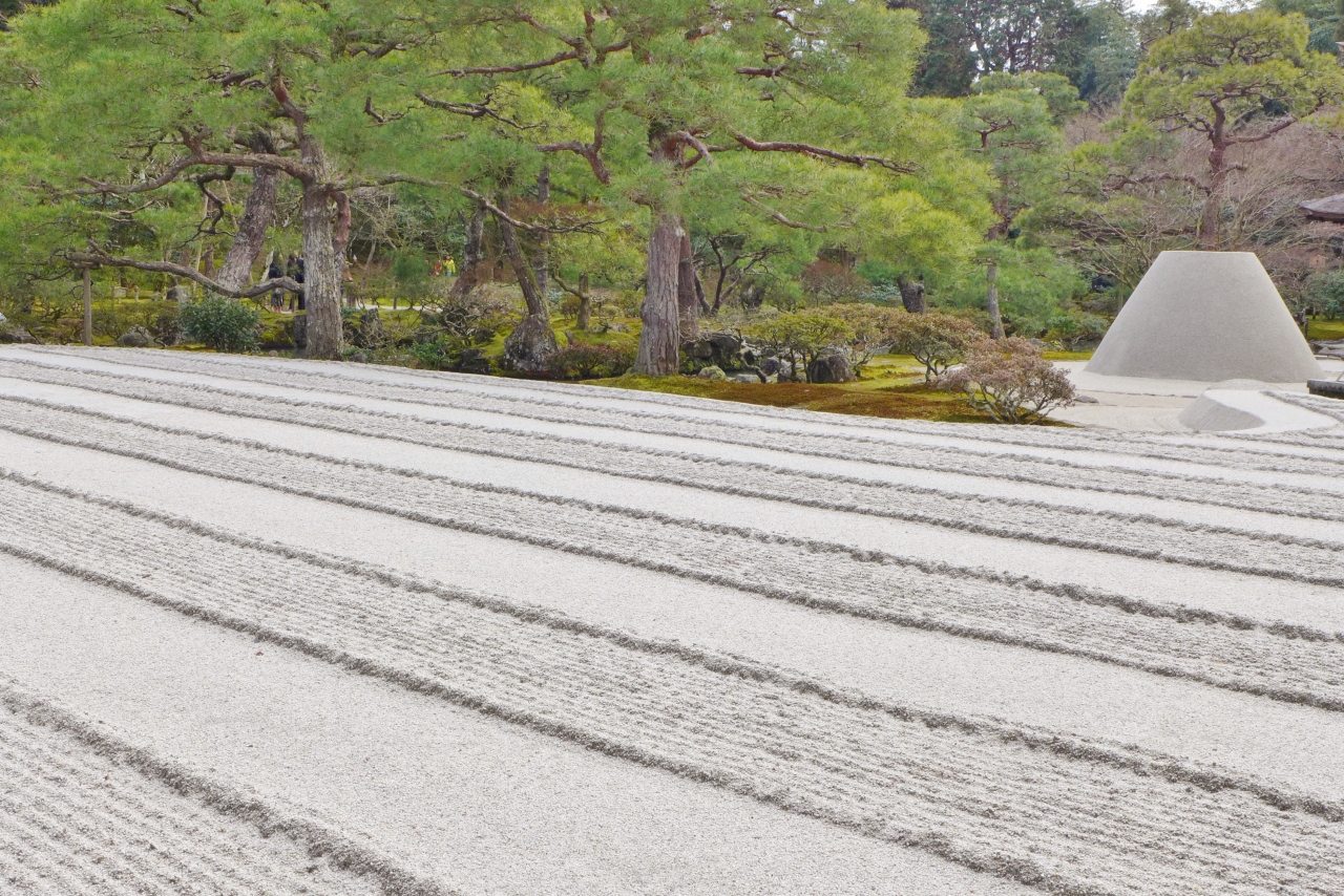 京都観光の人気スポットのひとつ銀閣寺。観音殿の前にある庭園には銀沙灘が広がり、向月台と呼ばれるプリンみたいな形の砂盛があり...  続きを読むます、この庭園の存在が視覚的にも色彩的にも観音殿を引立てていると思います。