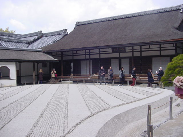 銀閣寺に入って、まず目に入ってくるのが砂で描いた庭園の模様です。月を眺めるためのものだったという話を聞きましたが、情緒あふ...  続きを読むれる景色は、いくつもの方向から眺めても飽きません。ここを通り過ぎると、銀閣の顔と言うべき観音殿があります。