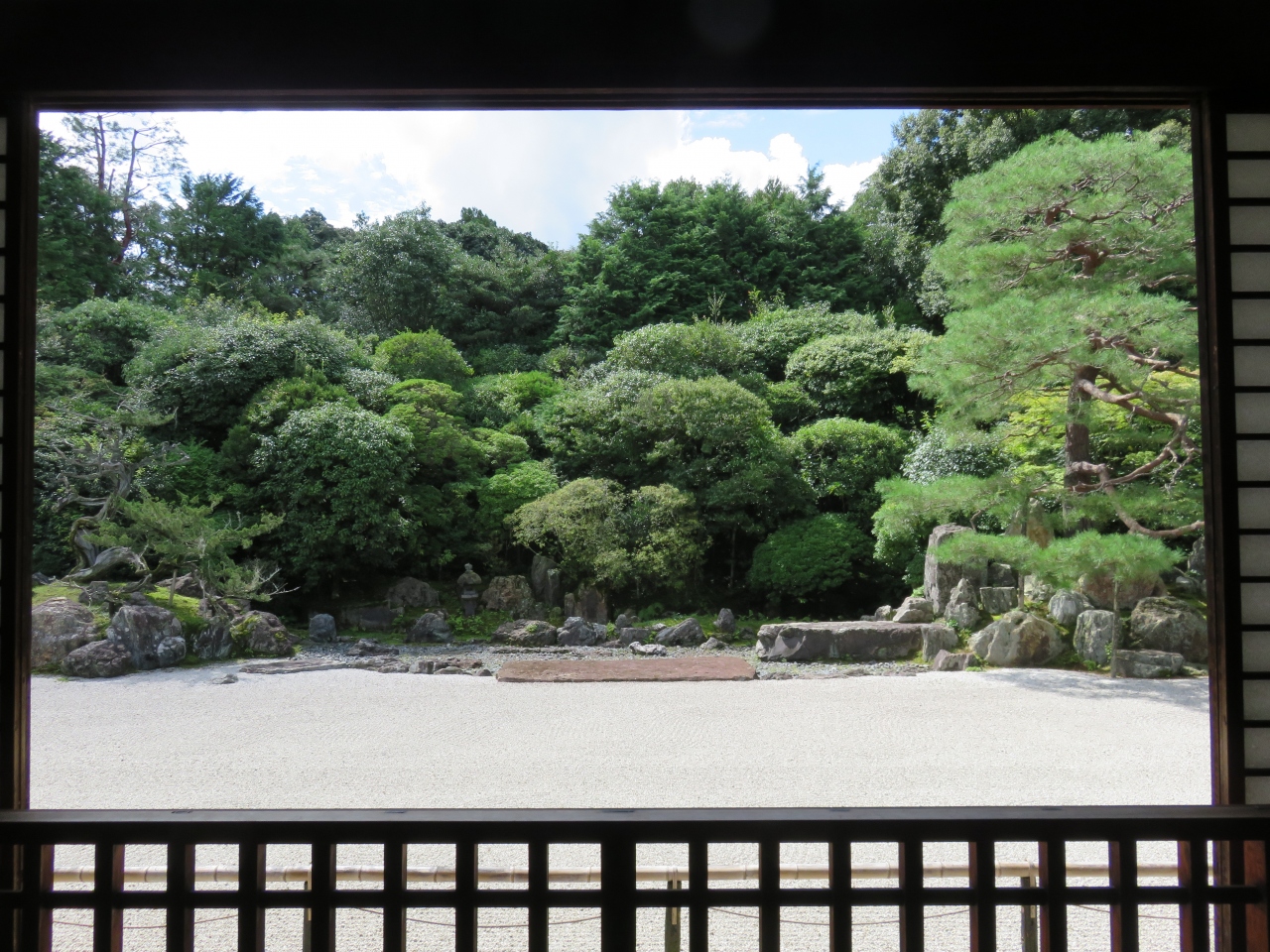東山の緑も借景に取り込みながらスカッとした気持ちになるお庭です。