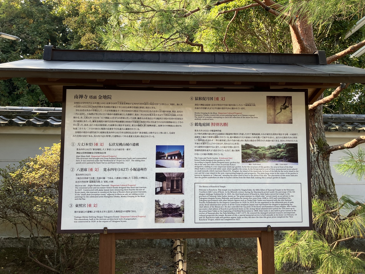 南禅寺塔頭。方丈は重文で、襖絵は狩野探幽らの筆。八窓席茶室(重文)と鶴亀の庭(特別名勝)は、小堀遠州作で名高い。