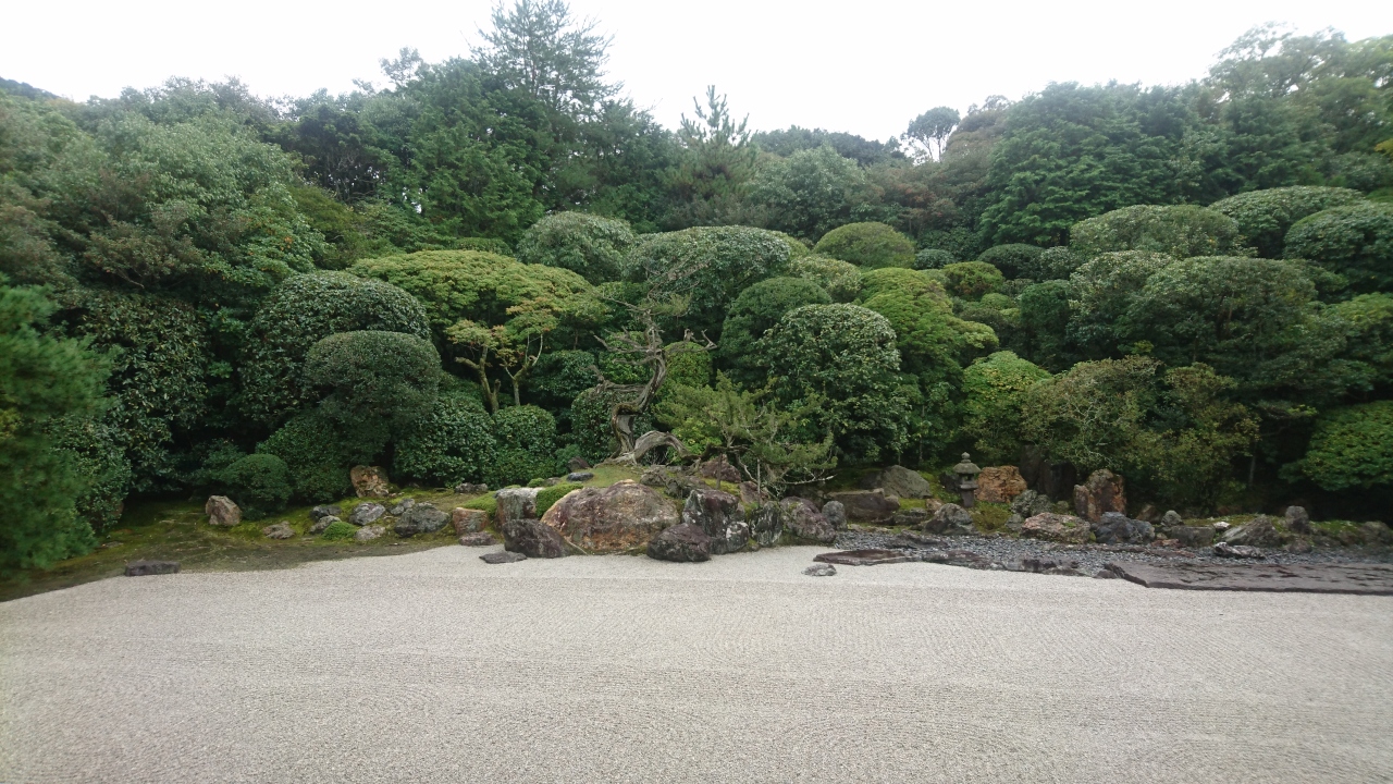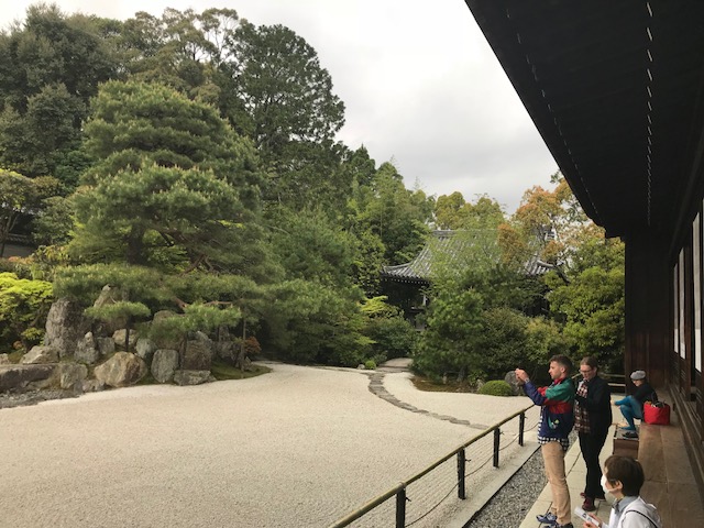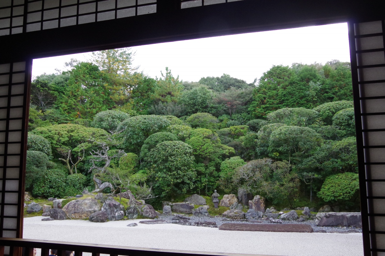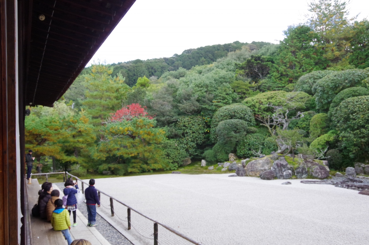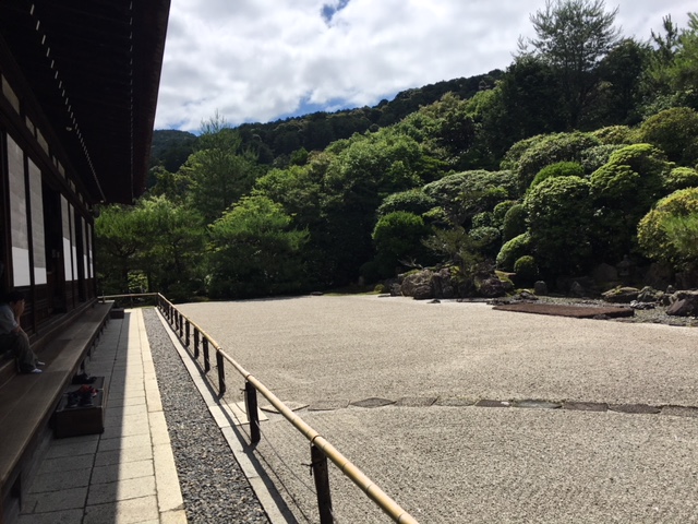 枯山水庭園の静けさを楽しむ。