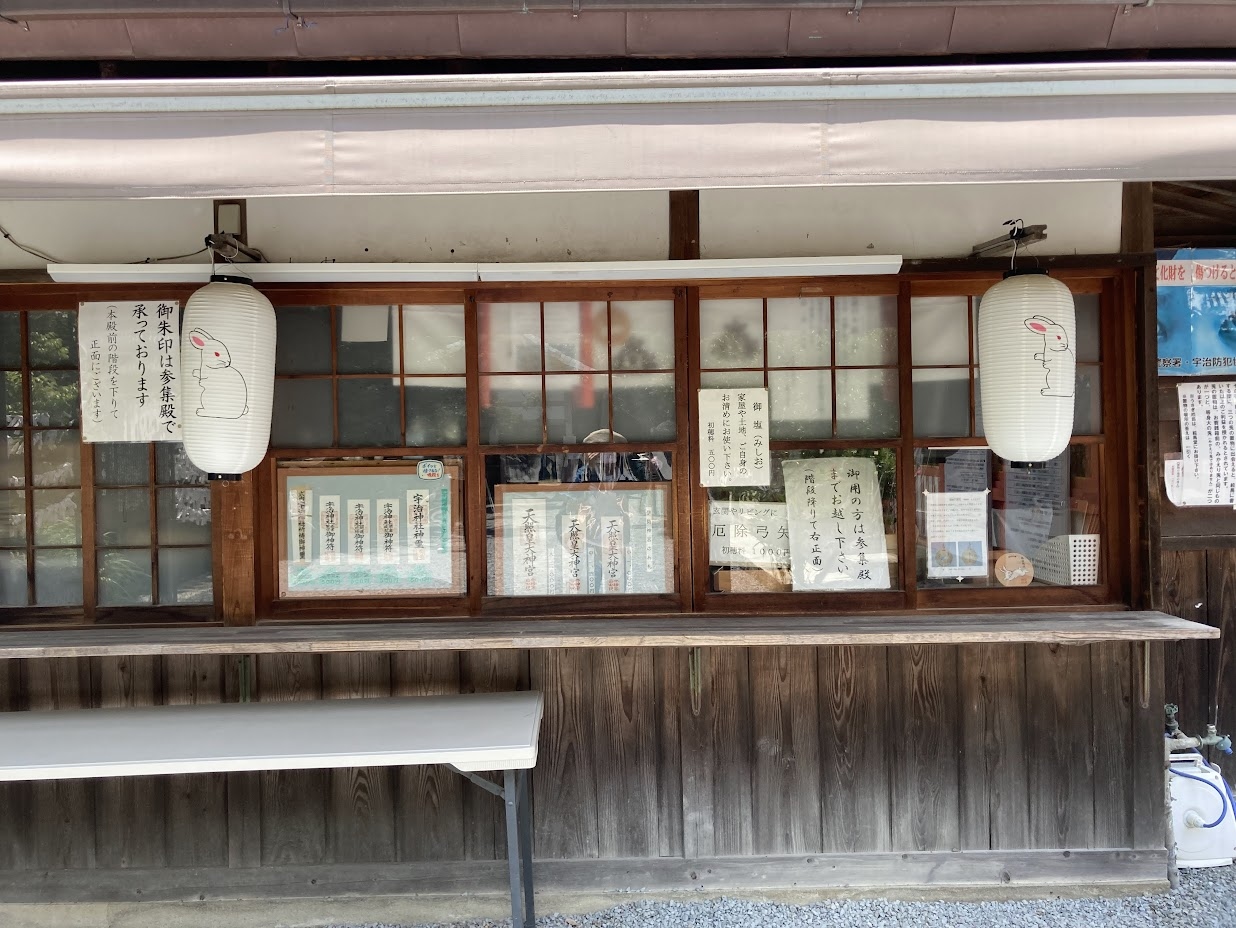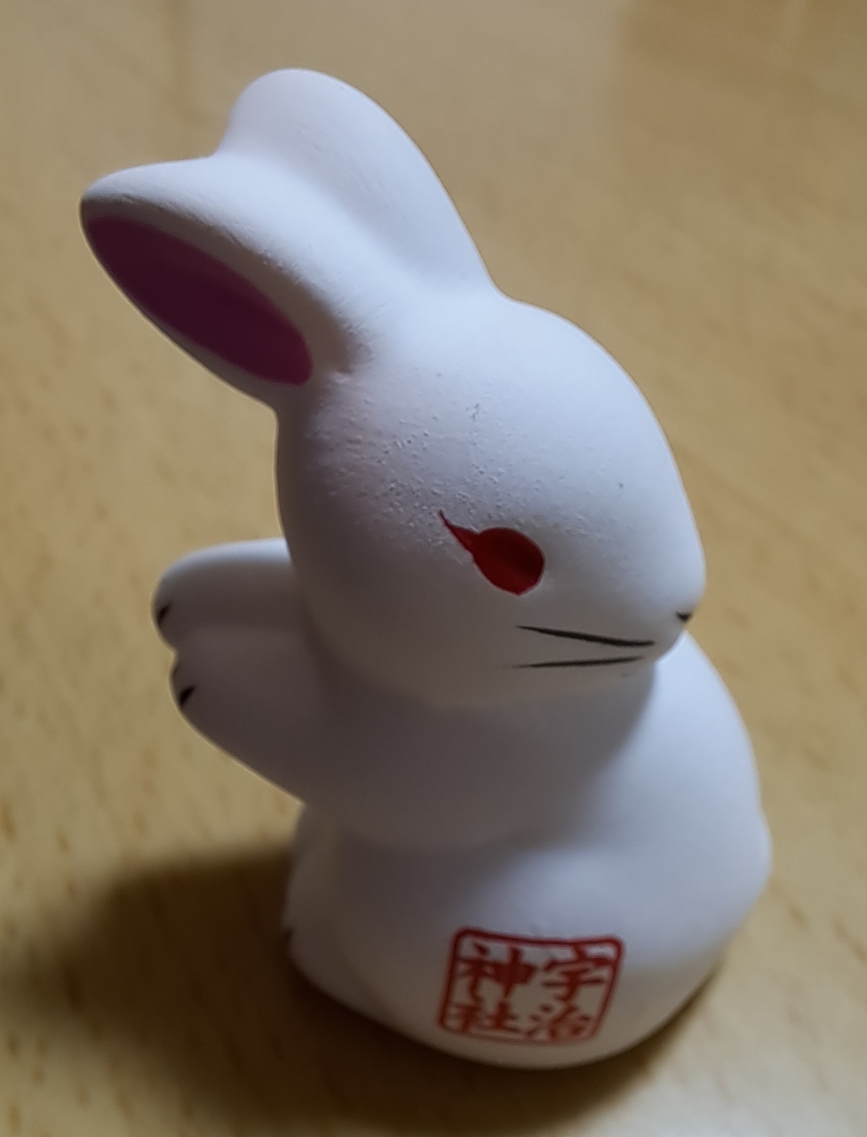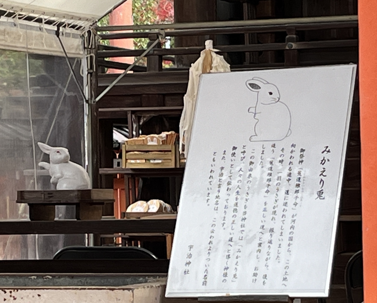 何度も振り返り安住の地へと先導した見返り兎の伝説がある:宇治神社