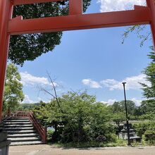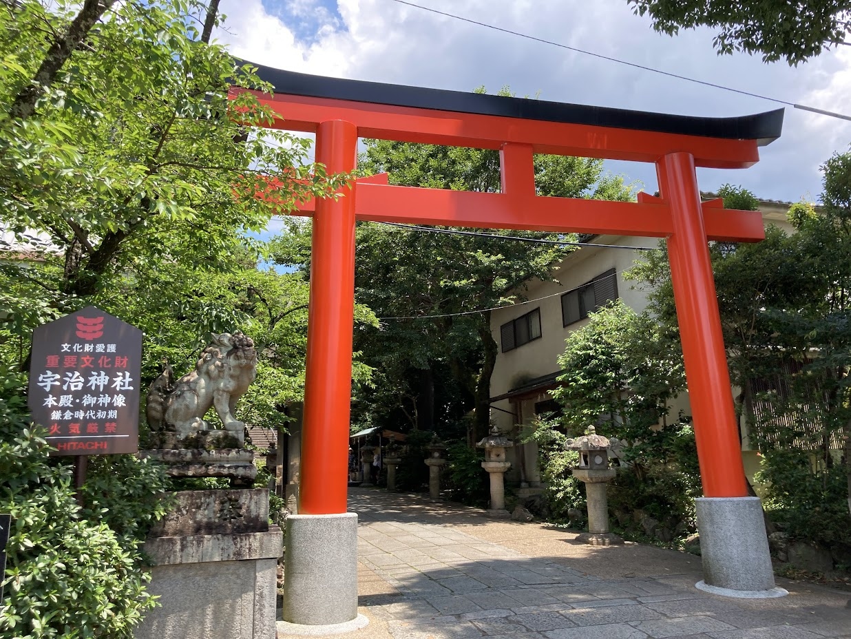 朝霧橋を渡るとすぐに、宇治神社の鳥居があります。