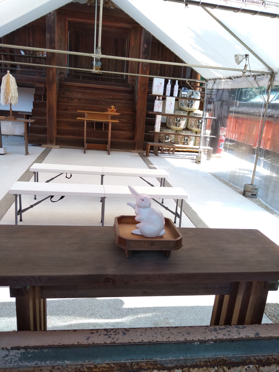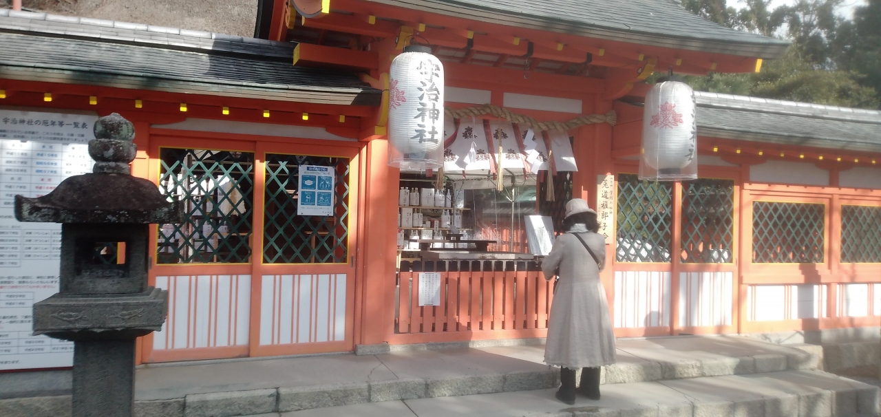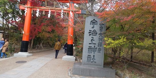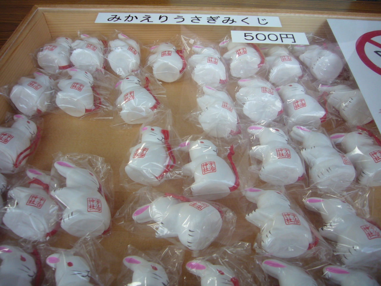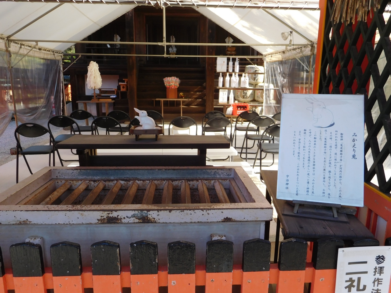 宇治神社は、宇治川東岸、朝日山の山裾にある神社です。宇治神社には、日本書紀に「兄である仁徳天皇との皇位を巡る葛藤から宇治で... 続きを読む自殺した」 と記されている皇太子 菟道稚郎子の等身大坐像を祀っているそうです。この辺りは菟道稚郎子が造営した桐原日桁宮跡と伝わっています。赤い鳥居の奥に見える本殿は、三間社流造り桧皮葺きの社殿で、鎌倉時代初期の建物で見ごたえが感じられました。かつてご祭神が宇治までの道を迷っているところ、道案内をしたのが兎だったのだそうです。振り返りながら案内している姿から「みかえり兎」と呼ばれています。正しい人生の道を示す神様の使いとされています。 閉じる