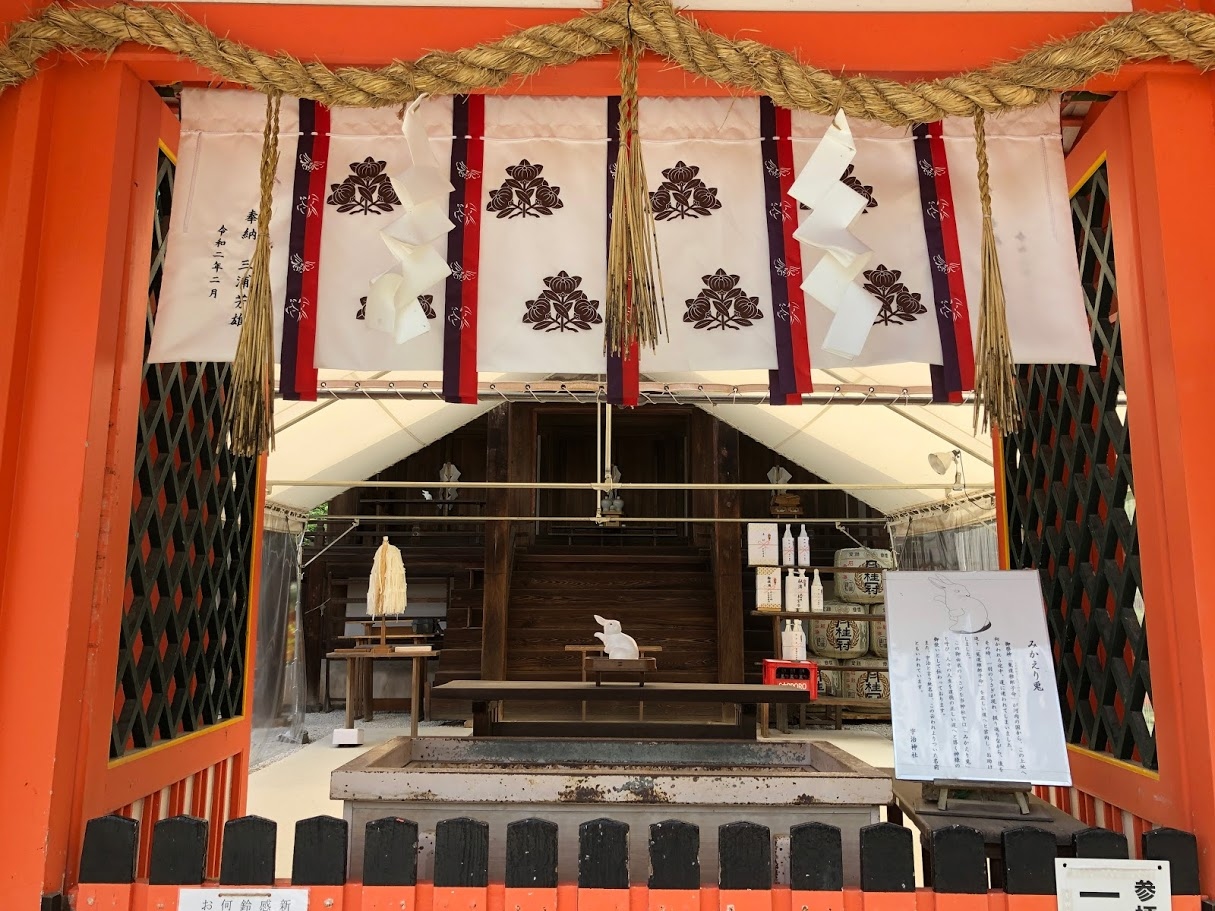 宇治川沿いに建つ宇治神社は、平安時代創建と伝えられ、古くは離宮八幡宮(桐原日桁宮(きりはらひげたのみや))と称し、祭神は応神天皇の皇子莵道稚郎子(うじのわきいらつこ)とされている。三間社流造りの本殿(重文)は鎌倉時代に建立されたものだが、他にも木造狛犬や白色尉面など貴重な文化財が伝わっている。