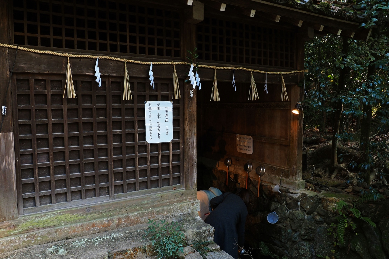 宇治七名水のひとつである桐原水が湧く井戸があり、唯一現存しているのはここだけ:宇治上神社
