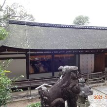 拝殿(国宝)は「宇治離宮」の遺構と伝わる寝殿造り風の建築。