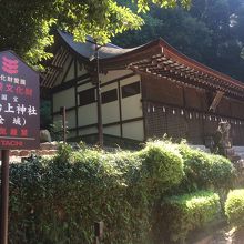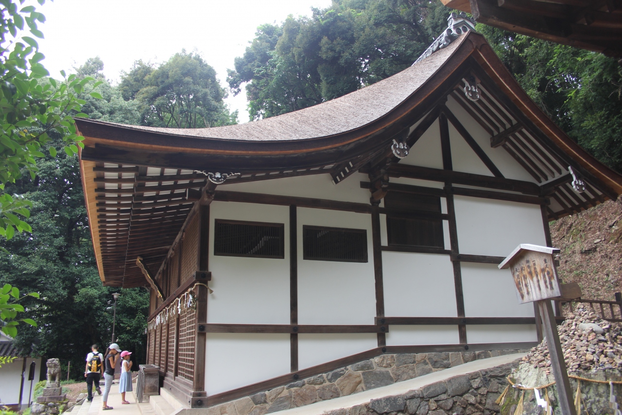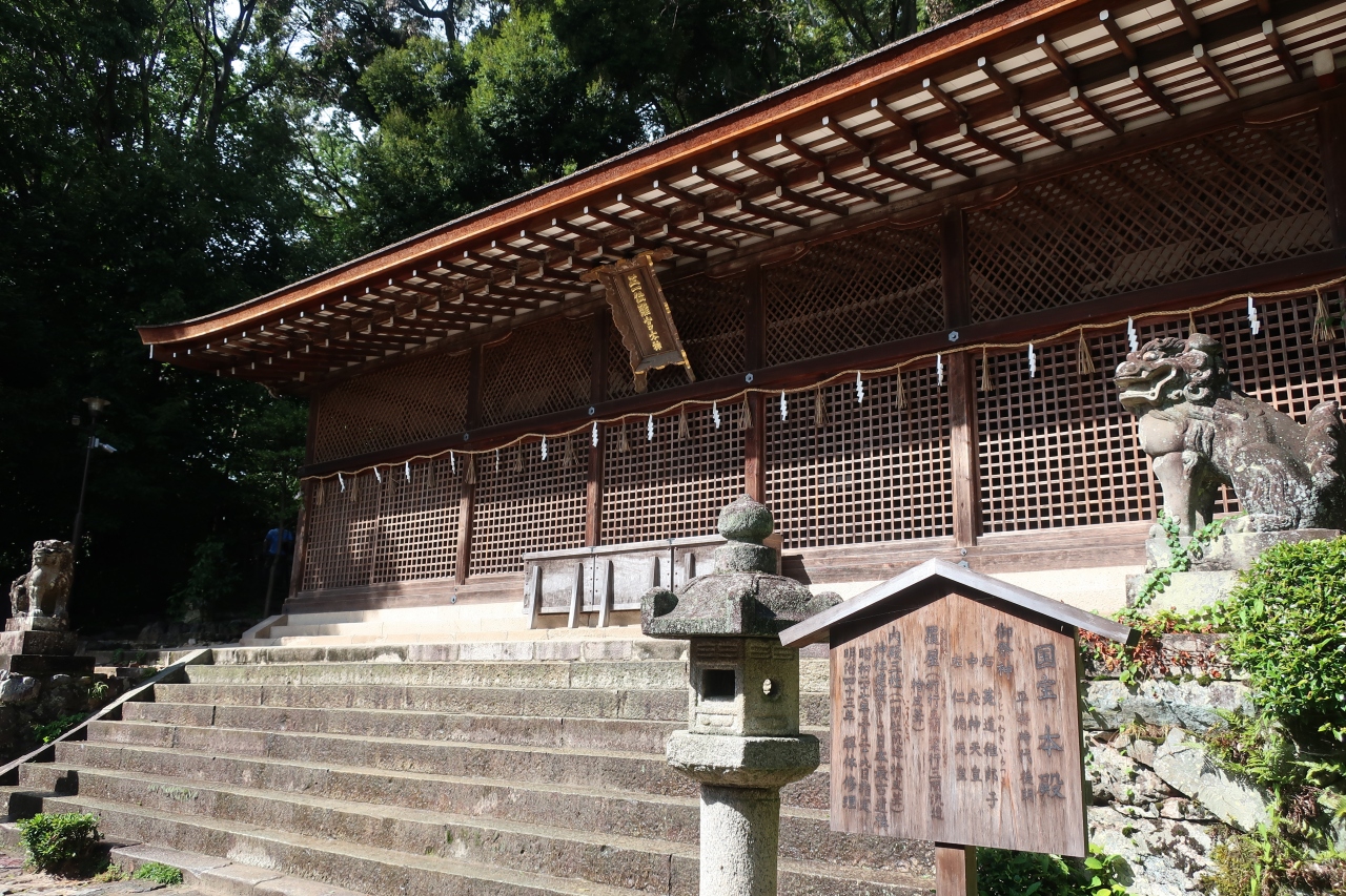 本殿は、現存する神社建築では日本最古(平安時代後期建築)。藤原時代の一間社流造りという3棟の社で、正面のかえるの股の飾りは藤原期の三かえる股のひとつとして知られる。拝殿は鎌倉期のものでいずれも国宝。世界遺産にも登録された。