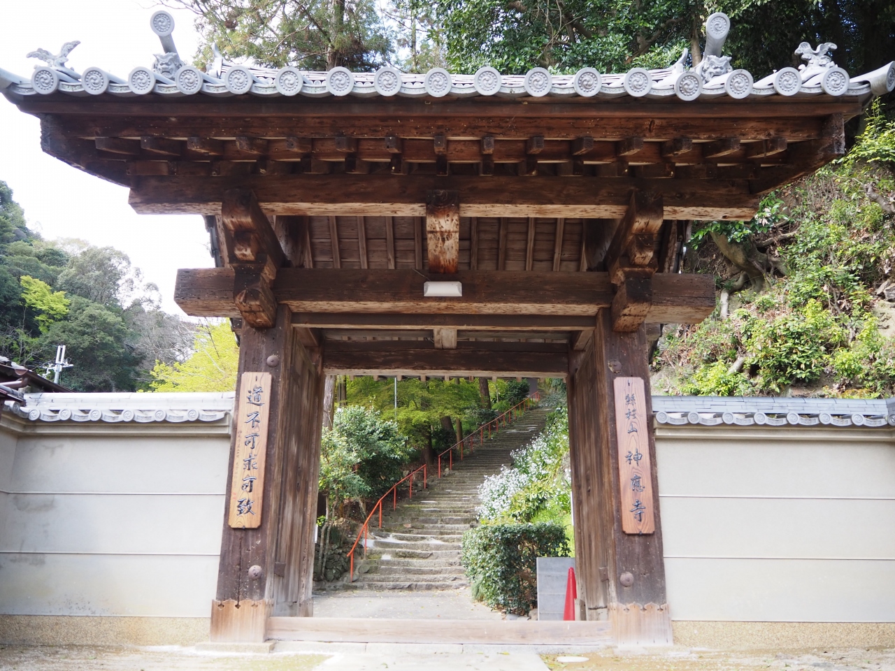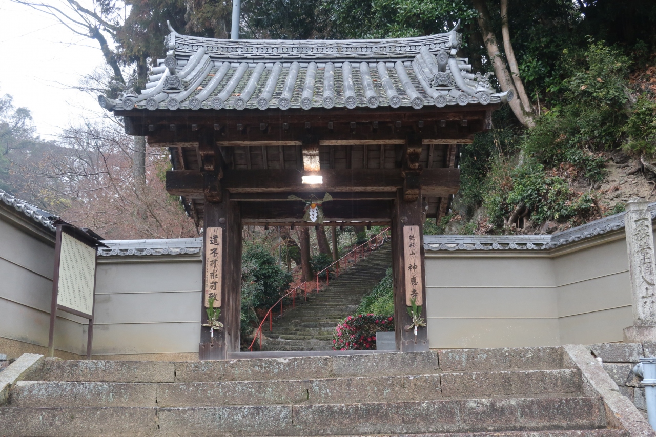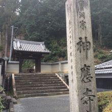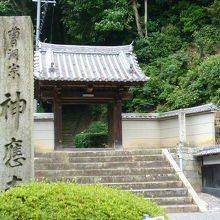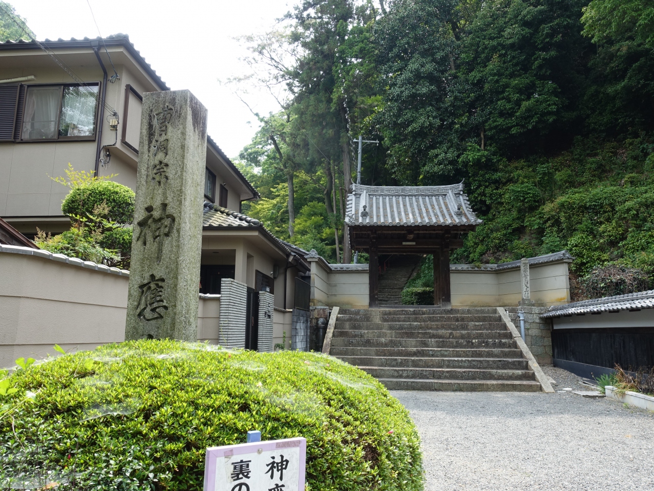 京阪八幡市駅から南へ徒歩3分に神應寺の山門がある