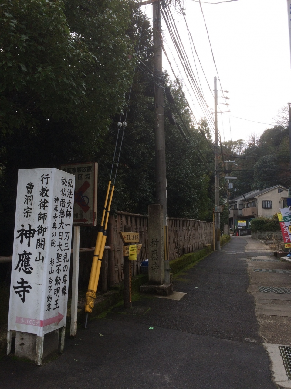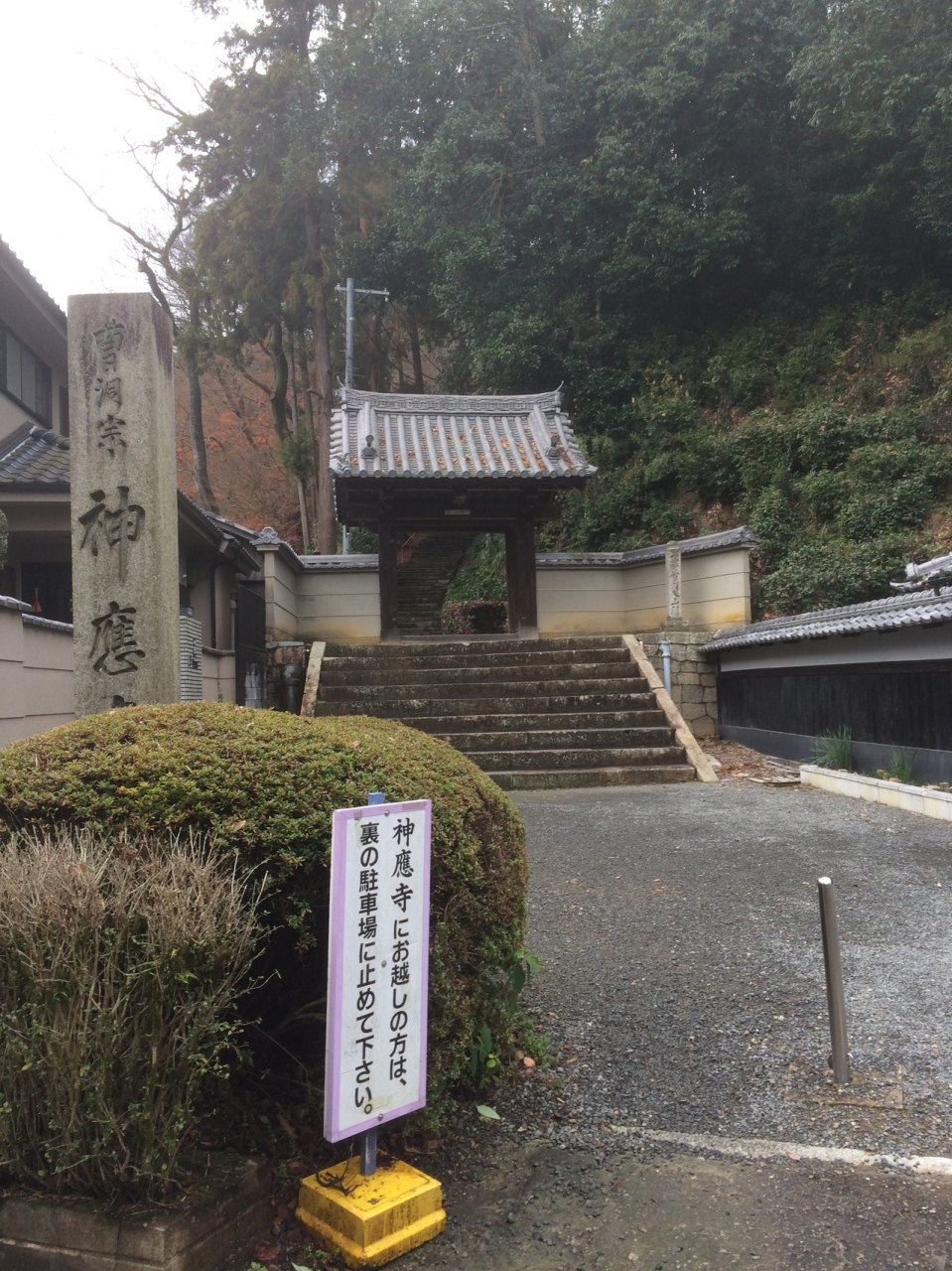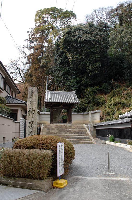京阪八幡市駅から南へ徒歩3分に神應寺の山門がある
