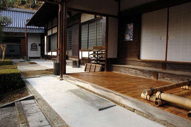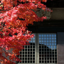 書院は伏見桃山城御殿の遺講で、襖や杉戸には狩野山雪筆による「竹に虎、御所車」などが描かれている。