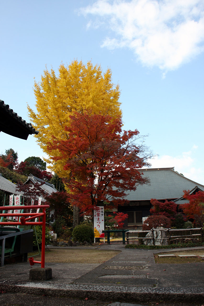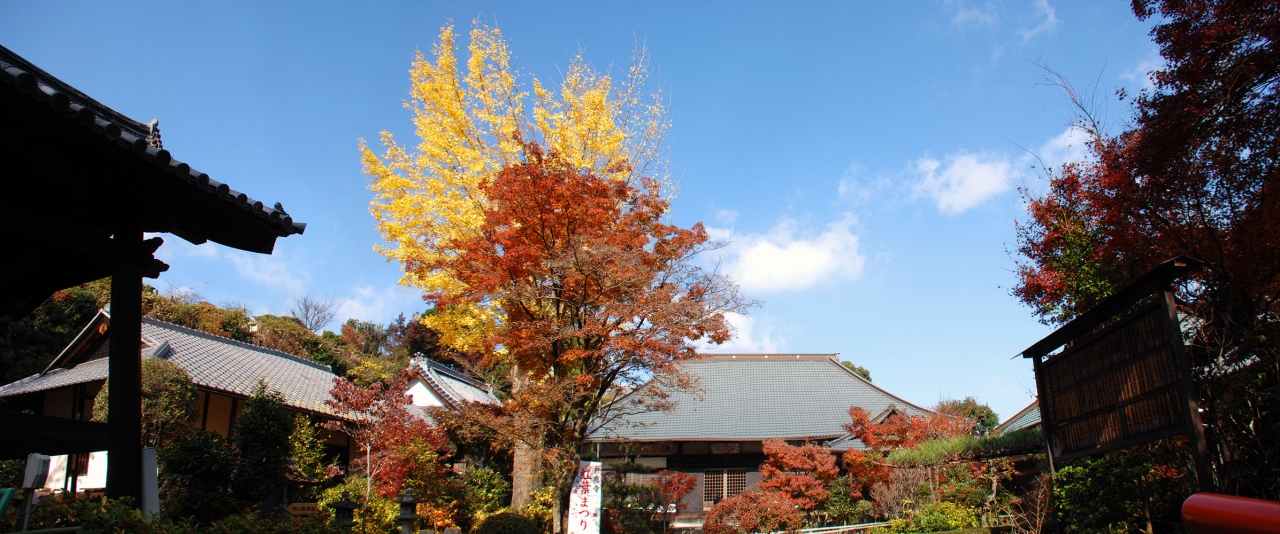 貞観元年(859)、奈良大安寺の僧・行教が宇佐より八幡大神を男山に勧請し、その翌年の貞観2年(860)に八幡宮社殿が造営され、これに伴い神應寺も創建されたと伝わります。 八幡大神は第15代天皇として数えられる応神天皇が神格化された存在であり、応神天皇の位牌所として始め応神寺と称しましたが、天皇の諱(いみな)を憚って神應寺に改めたといいます。 本堂には、本尊の薬師三尊仏のほか、豊臣秀吉の子・秀頼からの寄進ともいわれる衣冠束帯の豊臣秀吉像や、国の重要文化財に指定されている行教律師の像も祀られています。 行教律師坐像は平安時代前期の作で、江戸時代まで石清水八幡宮三ノ鳥居近くにあった開山堂に安置されていたものが、明治元年(1868)からの明治政府による神仏分離令で廃仏毀釈のため取り除かれ、明治6年(1873)に神應寺本堂に移されました。 境内は春のシャガや初夏のアジサイなど季節の花のほか、紅葉の名所として知られており、春の青もみじに加え、秋には緑から黄、赤と徐々に色づく紅葉の美しいグラデーションが長い期間楽しめます。さらにはイギリスで改良された桜・アーコレードが、春と秋に花を咲かせるようになっており、紅葉と桜を同時に見ることもできます。 神應寺の谷の奥には「奥の院」があり、杉山谷不動尊には不動明王や市指定文化財である矜羯羅(こんがら)童子・制多迦童子像が祀られています。秘仏として大切に祀られてきた大聖不動明王は、古来より広く信仰を集めてきました。さらに奥には「ひきめの滝」があり、神仏に祈願する滝行が今も行われています。
