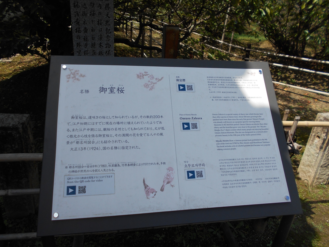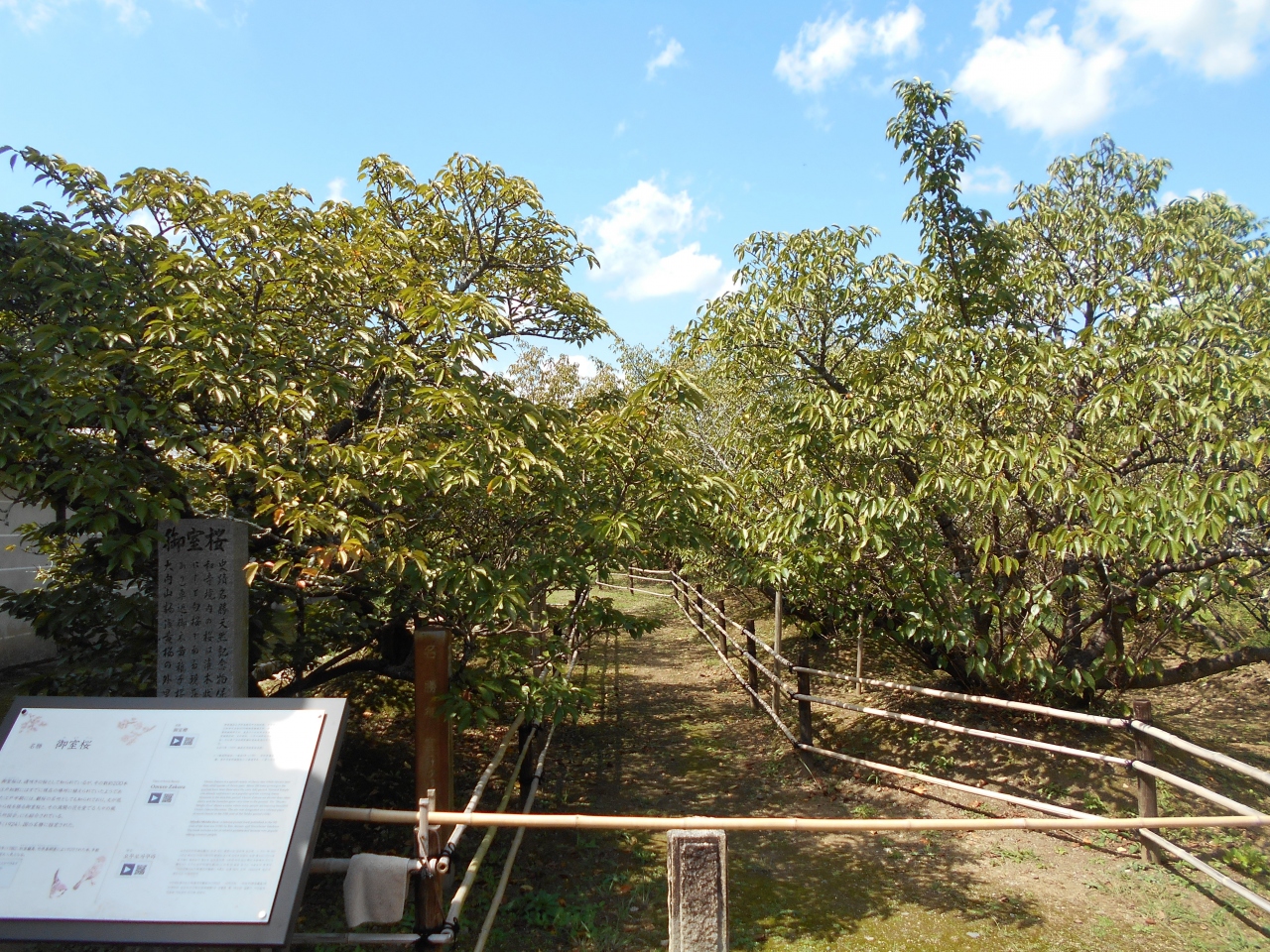 世界遺産「仁和寺」の注文を入った左側に広がる桜の園。国の名勝に指定され遅咲きの桜として知られています。植木の数は200本程...  続きを読むで丈が低く根元から枝を張る御室桜は満開の時期は美しい景観を与えてくれることでしょう。TVにもよく放映されていますが門跡寺院らしい気品にあふれています。訪れたのは晩夏の9月初旬でいくら遅咲きでもダメですね。  閉じる
