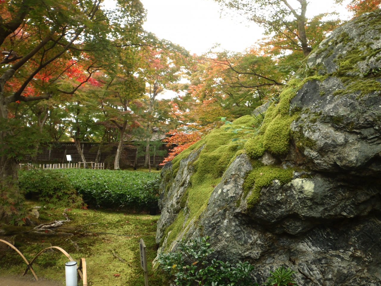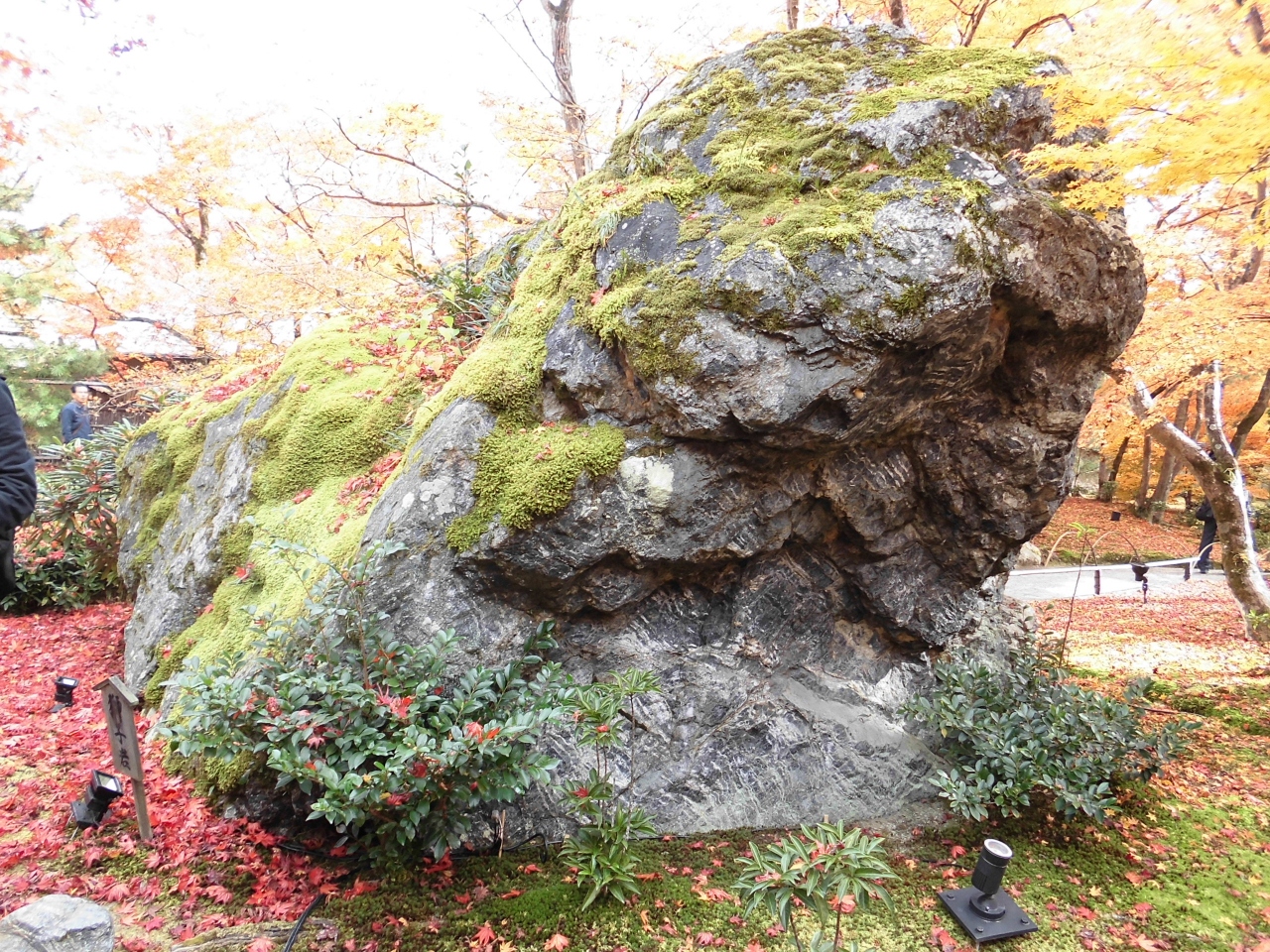 庭園はそれほど広くはありませんが、こぢんまりとまとまっていて、京都市内でも屈指と言ってよいかと思います。回遊式のお庭を歩いて行くと「獅子岩」や「碧岩」と呼ばれる巨岩があり、「碧岩」のほうは直接触れたり岩に耳をあてたりすることができ、パワースポットとして人気があるようです。
