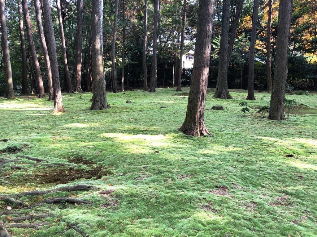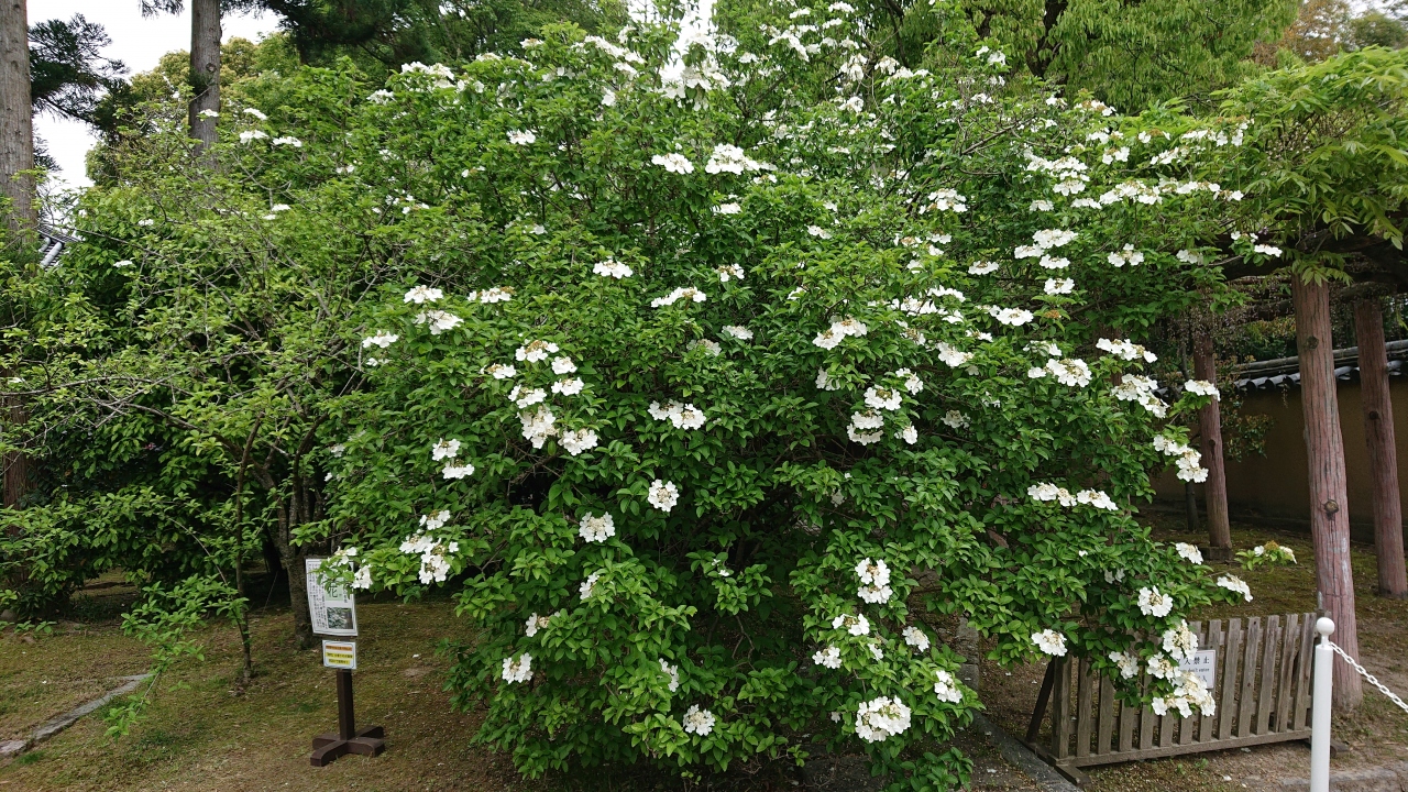 「鑑真和上坐像」を参拝し、次は、「御影堂」を出て左手に進み、「鑑真和上御廟」へ向かいました。「鑑真和上御廟」は、もちろん字の如く「鑑真和上」の墓所ですが、もう一つ見るべきポイントがあります。それは「鑑真和上御廟」の門を潜ると、目の前にモスグリーンの世界が広がってきます。そのモスグリーンの波は、「鑑真和上御廟」へ続く池のところまであり、その美しさに思わず見とれてしまいました。「鑑真和上御廟」は、小高い方墳上の土壇の上に、鎌倉時代後期の高さ2.5mの宝篋印塔が立っています。「鑑真和上御廟」の前に立つとそこには、「鑑真和上」の故郷である揚州から贈られた、ガクアジサイに似た白い可憐な花を4月から5月頃に咲かせる瓊花が植えられていました。「鑑真和上」は、同時期の高僧の中では唯一、1250年の永きに亘って、参拝する人が途絶えないそうです。そして、「鑑真和上御廟」の右側には、「趙樸初居士之碑」と書かれた石碑があります。「趙樸初」は、中国の著名な仏教指導者で、日中仏教文化の交流に貢献しました。そして、「唐招提寺」の「鑑真和上」の墓地に石碑を建てた初のケースだそうです。