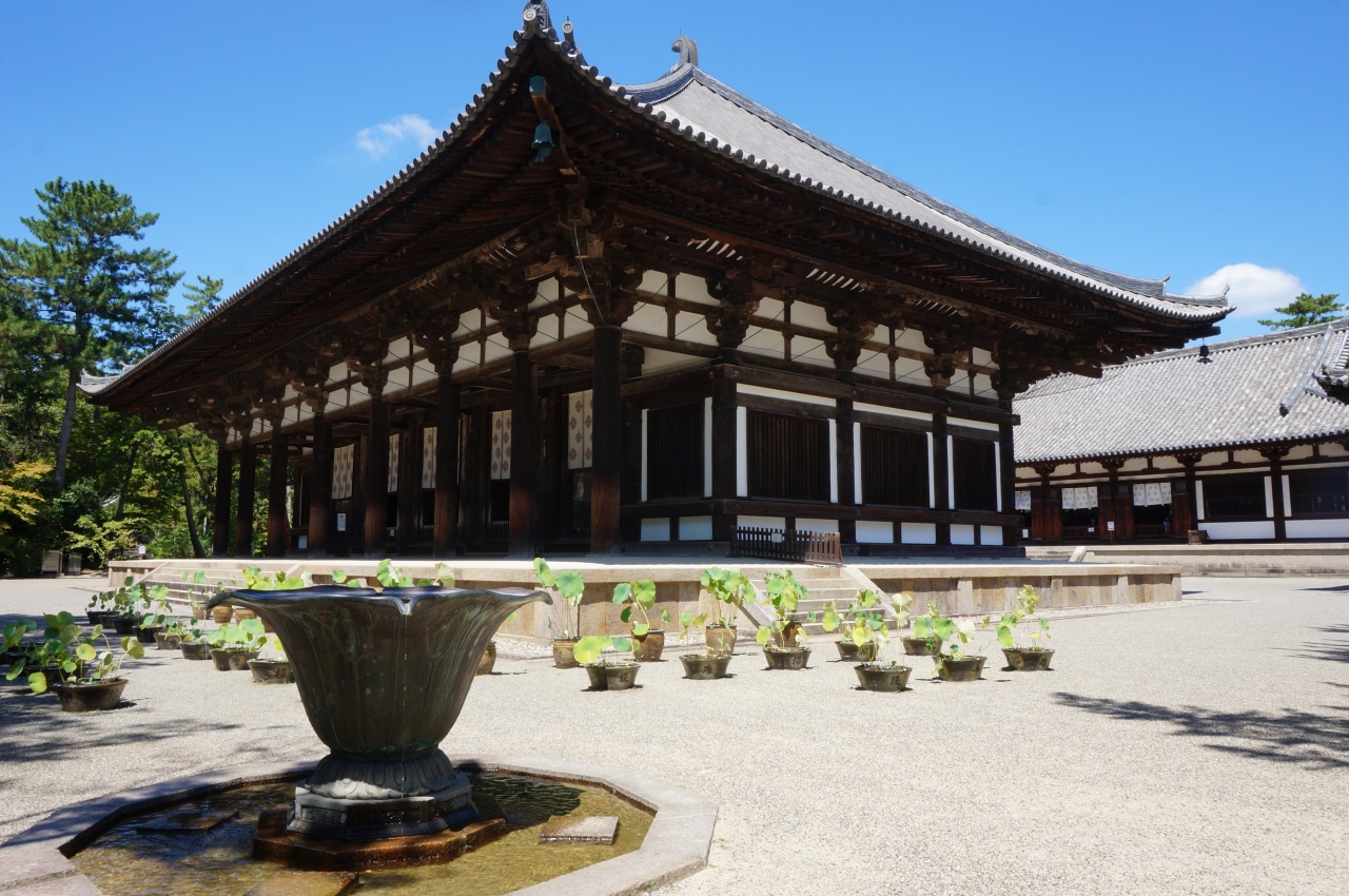 唐僧鑑真創建の大寺。美しいエンタシスの柱で有名な金堂には天平仏が並ぶ。世界遺産「古都奈良の文化財」の8資産群のうちのひとつ。