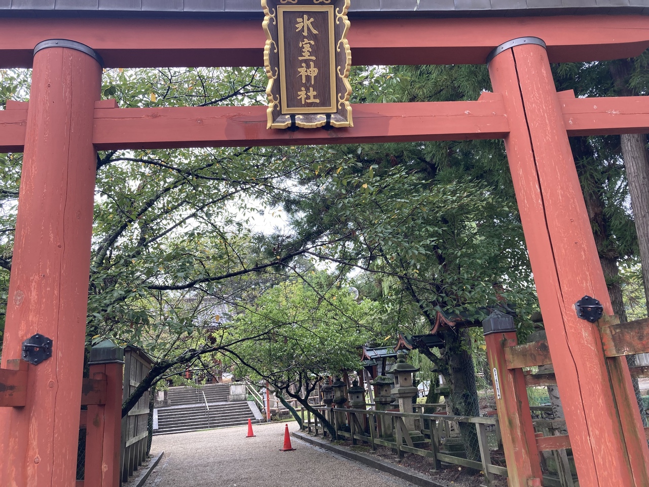 (氷室神社)献氷祭にはタイやコイを凍らせた高さ1mの氷柱が奉納