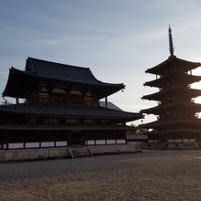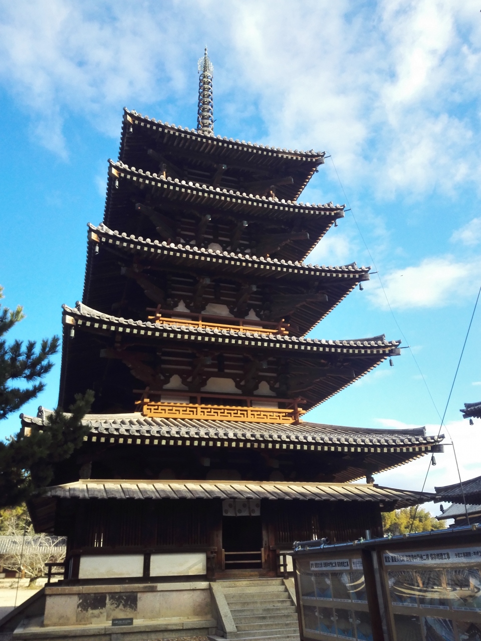 廻廊ごしでも五重の塔を拝める。廻廊とセットの方がベター?