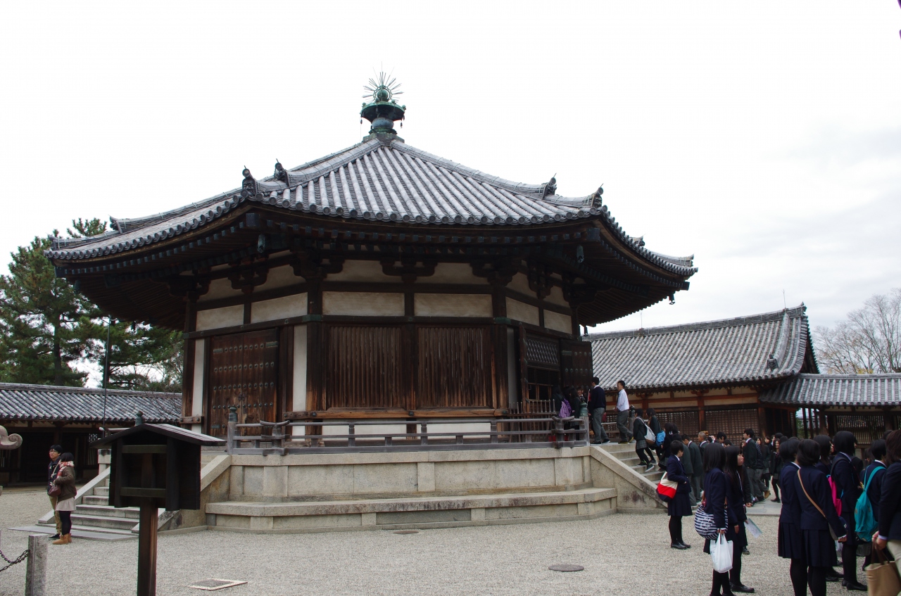 聖徳太子の等身像と言われる救世観音像を安置する八角円堂