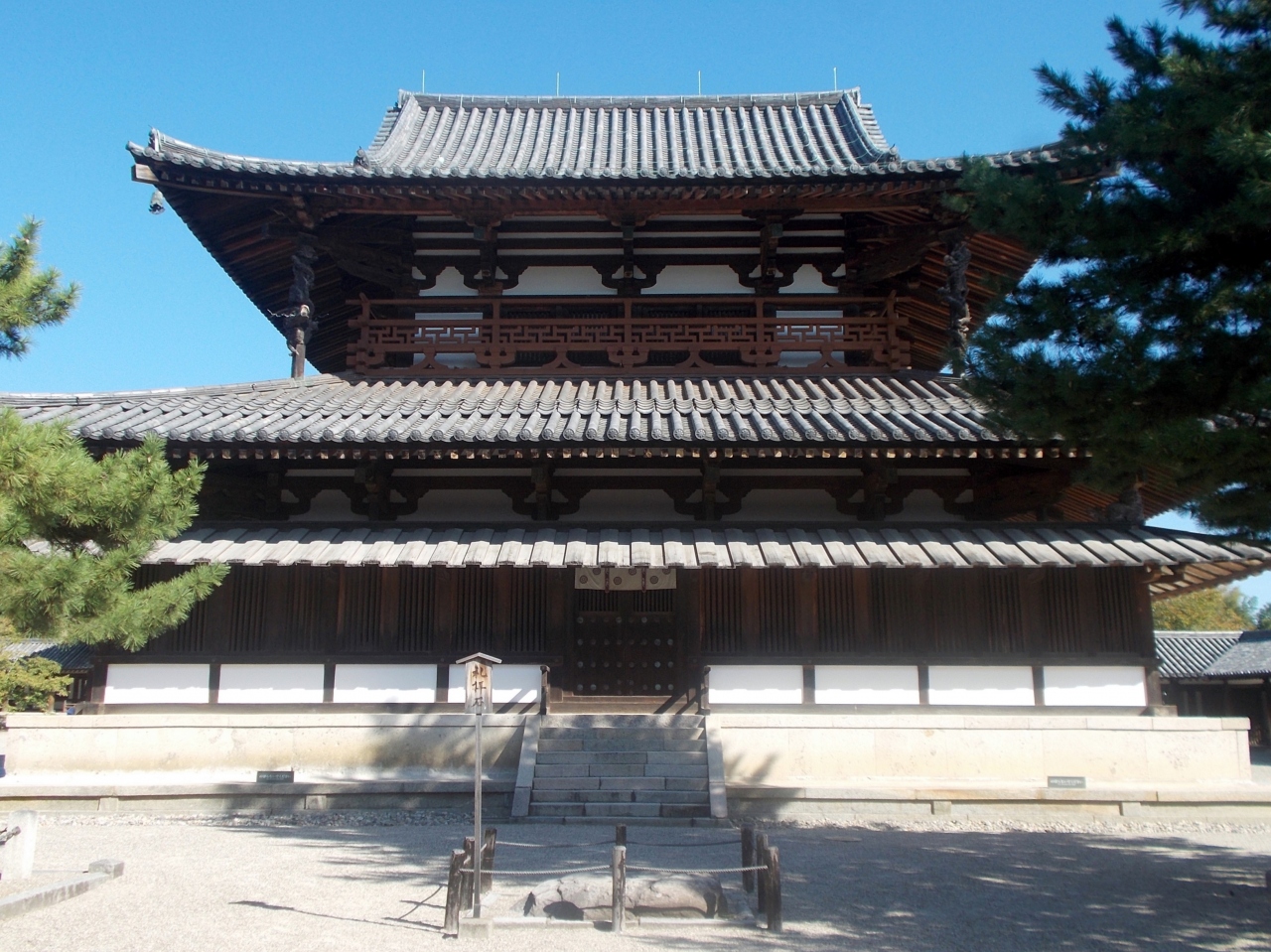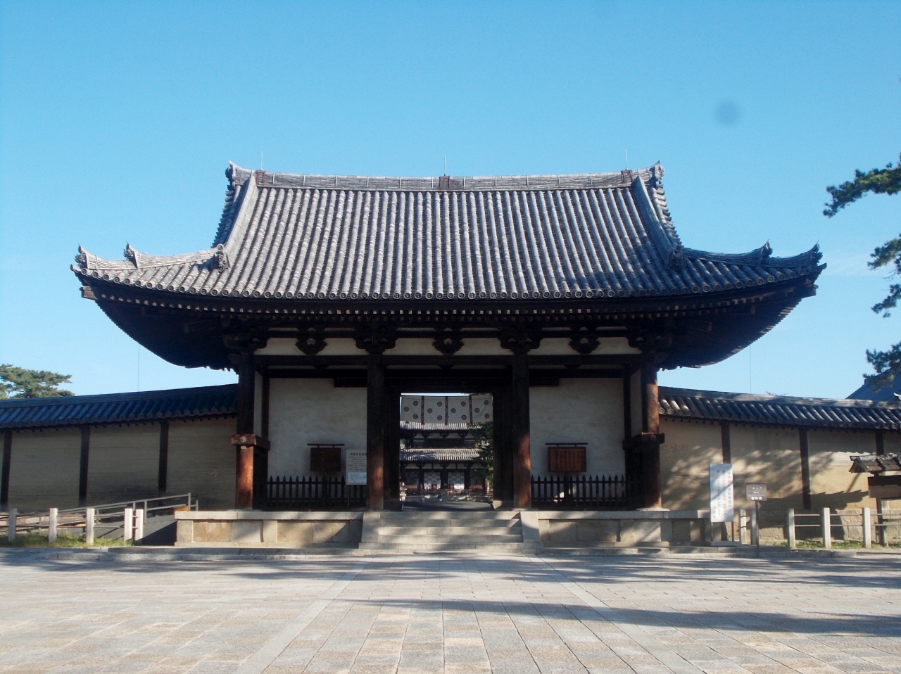 東院伽藍への入口にあたる八脚門の東大門、国宝。