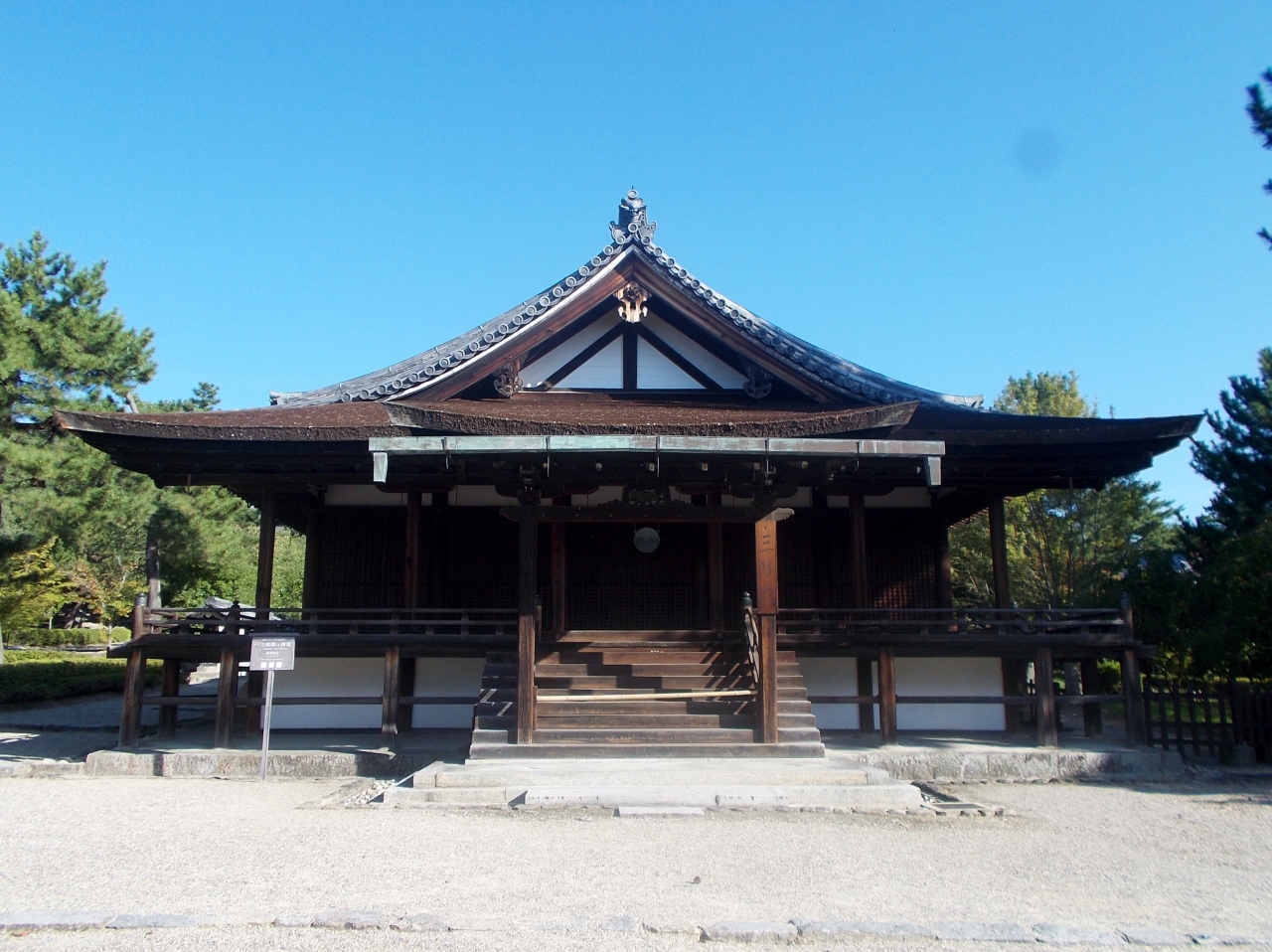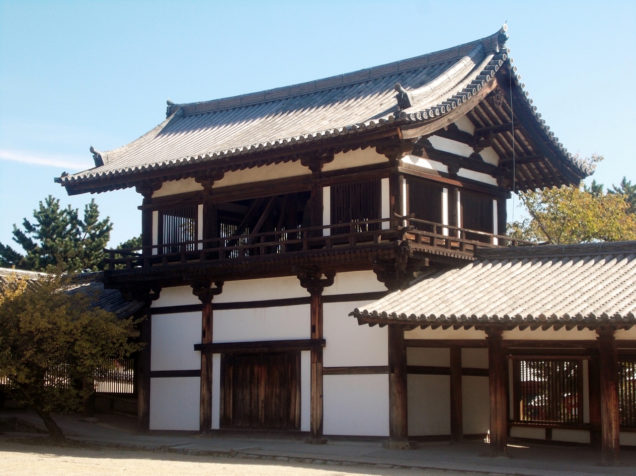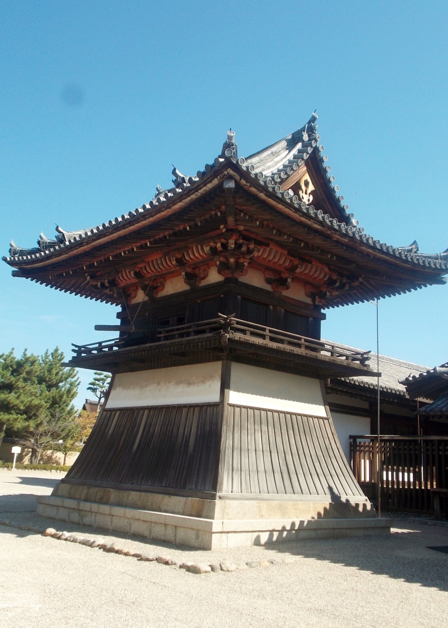 東院鐘楼全景?。右手後ろの白い建物が国宝伝宝堂です。