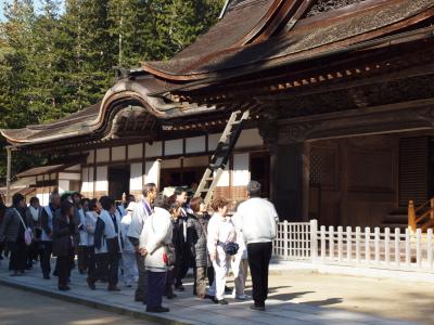 金剛峯寺は 桧皮(ひわだ)ぶきの重厚な屋根で、建物に入ってすぐ御朱印をもらった後内部の見物をしました。