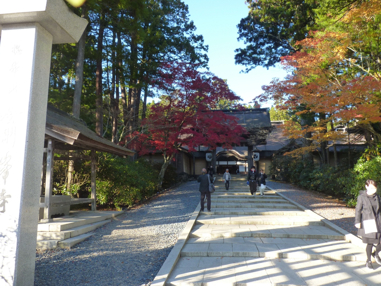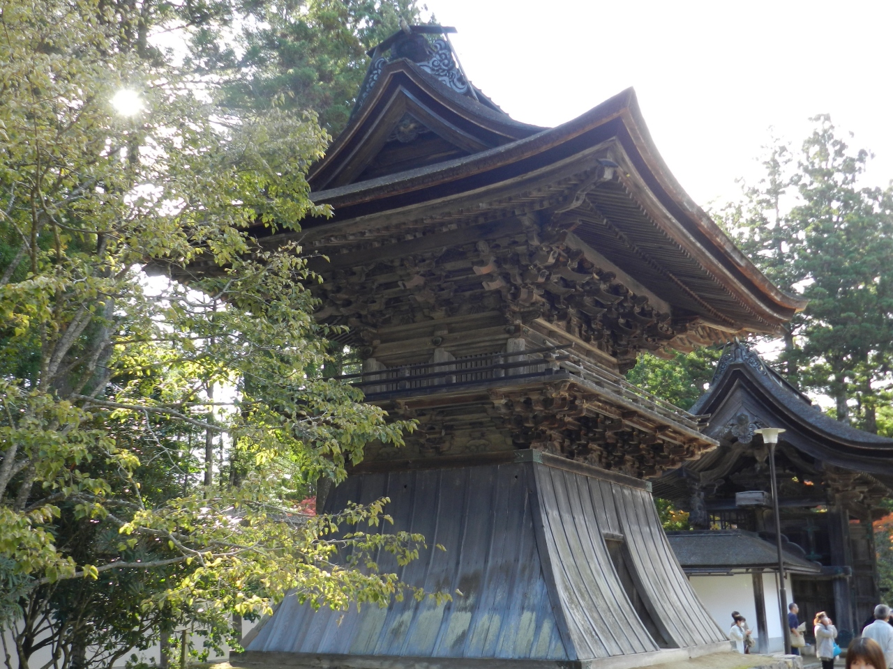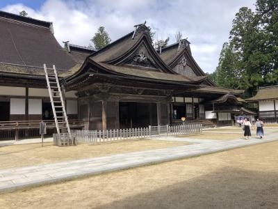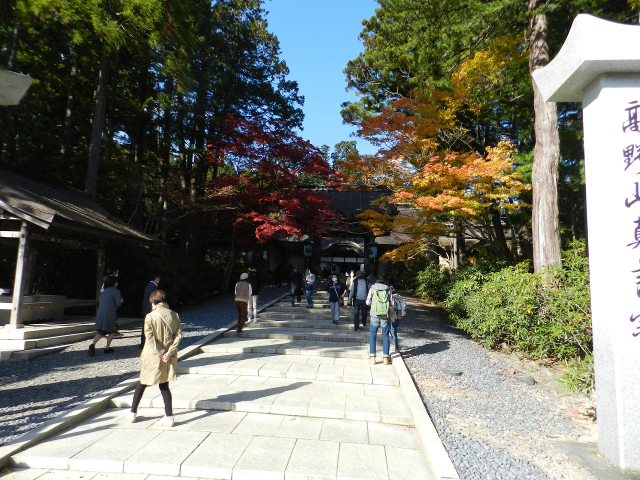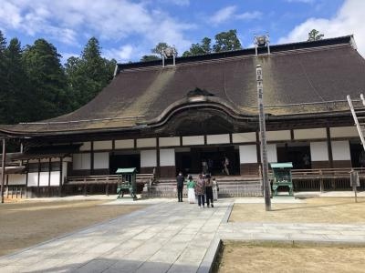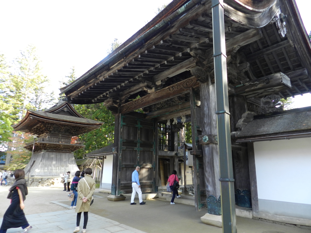 「金剛峯寺前駐車場」に車を停め、「金剛峯寺」に行きました。堂々とした正門は金剛峯寺の建物の中で一番古いそうです。大玄関を見... 続きを読むながら右に回って参拝者入り口から入りました。拝観料は1000円を払って中に入ると、撮影禁止でしたが、大広間、持仏間、梅の間、柳の間など美しい襖絵のある部屋があり、それらを越えると、「新別殿」という大広間も見学することができました。「新別殿」には綺麗な曼荼羅も飾られていました。「金剛峯寺」を順路に沿って拝観していると、「蟠龍庭(ばんりゅうてい)」というお庭に出ました。その後、「台所」を見学しました。実際に大勢のお坊さんの食事を賄ってきた場所だそうです。柱や梁も煤で真っ黒になっていました。一つの釜で98キロのご飯を炊くことができる大釜が三基並んでいて、三つで一度に二石(約2,000人分)のご飯を炊けるそうです。お彼岸のせいかお供えを配っていたのでありがたくいただいて拝観を終えました。 閉じる