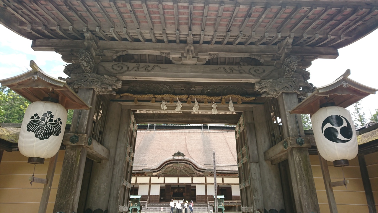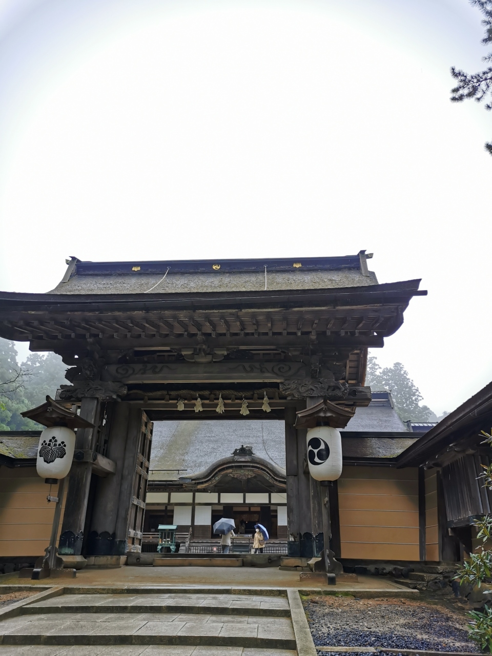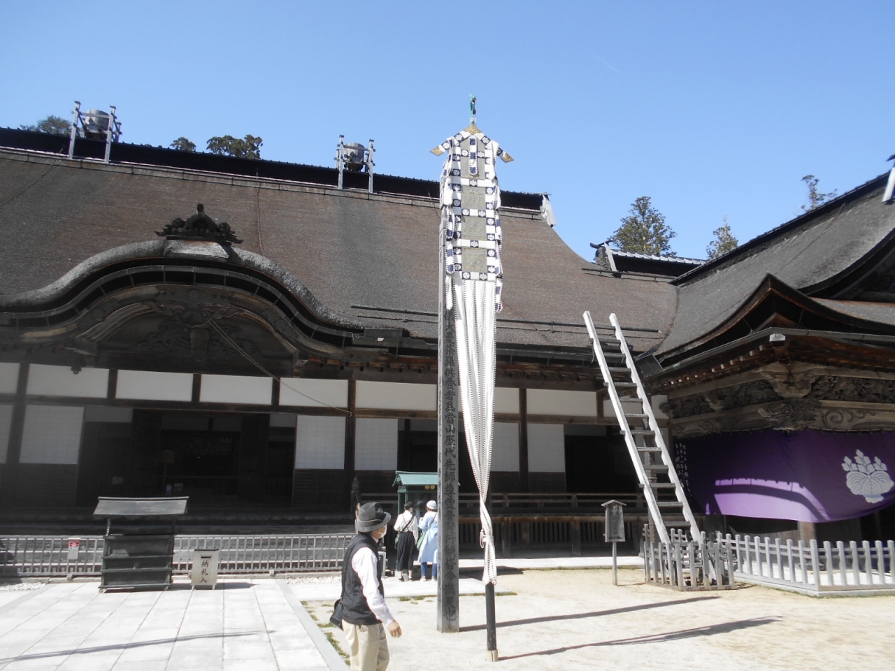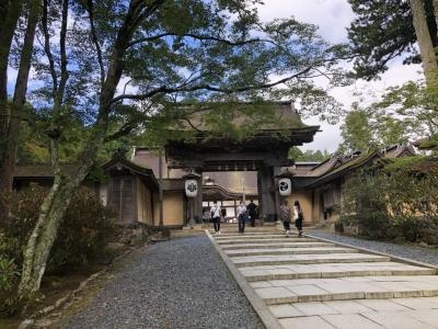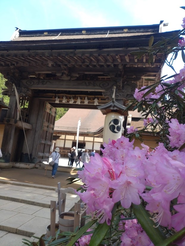 「金剛峯寺前駐車場」に車を停め、「金剛峯寺」に行きました。堂々とした正門は金剛峯寺の建物の中で一番古いそうです。大玄関を見... 続きを読むながら右に回って参拝者入り口から入りました。拝観料は1000円を払って中に入ると、撮影禁止でしたが、大広間、持仏間、梅の間、柳の間など美しい襖絵のある部屋があり、それらを越えると、「新別殿」という大広間も見学することができました。「新別殿」には綺麗な曼荼羅も飾られていました。「金剛峯寺」を順路に沿って拝観していると、「蟠龍庭(ばんりゅうてい)」というお庭に出ました。その後、「台所」を見学しました。実際に大勢のお坊さんの食事を賄ってきた場所だそうです。柱や梁も煤で真っ黒になっていました。一つの釜で98キロのご飯を炊くことができる大釜が三基並んでいて、三つで一度に二石(約2,000人分)のご飯を炊けるそうです。お彼岸のせいかお供えを配っていたのでありがたくいただいて拝観を終えました。 閉じる