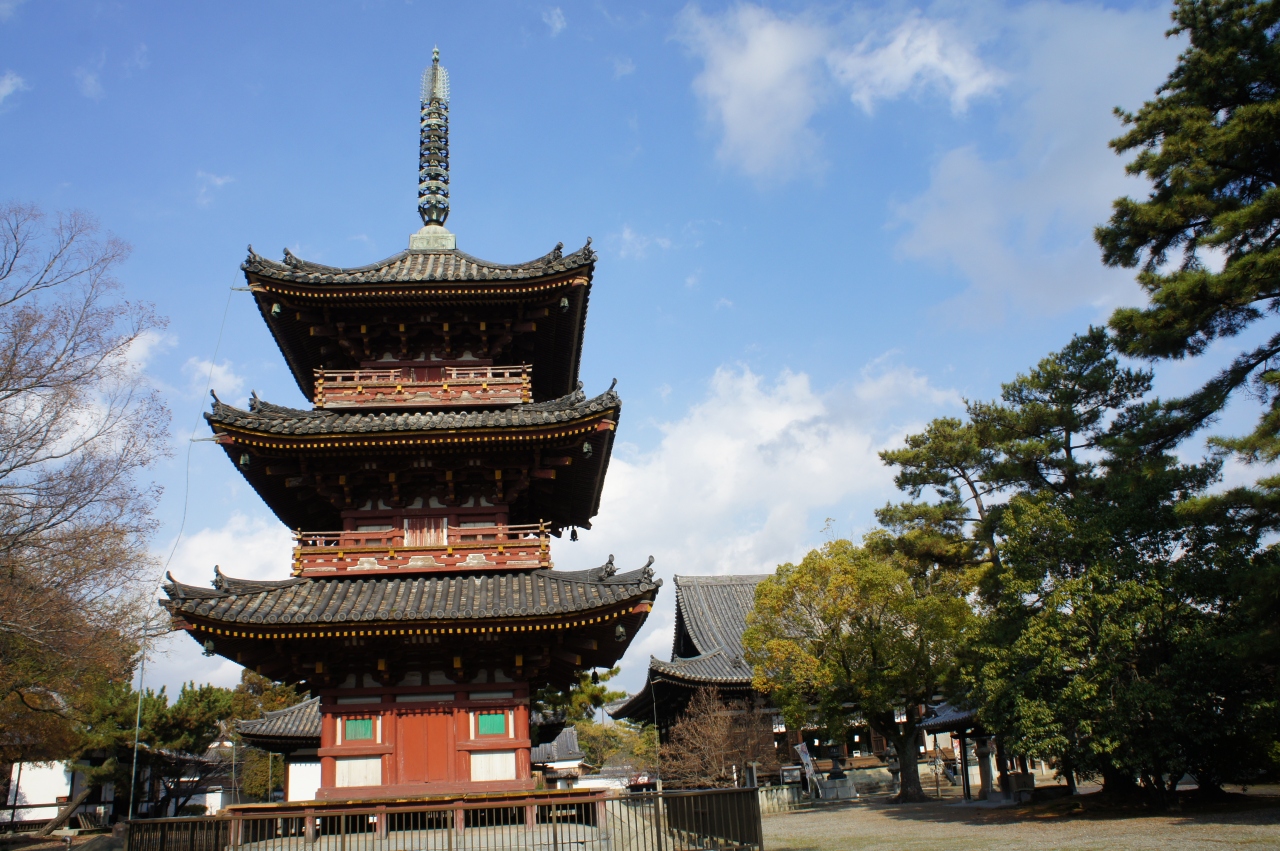 国宝の太子堂は小さいながらも素晴らしい建築。三重塔も境内にあり見学しながら撮影すると1時間以上は必要です。