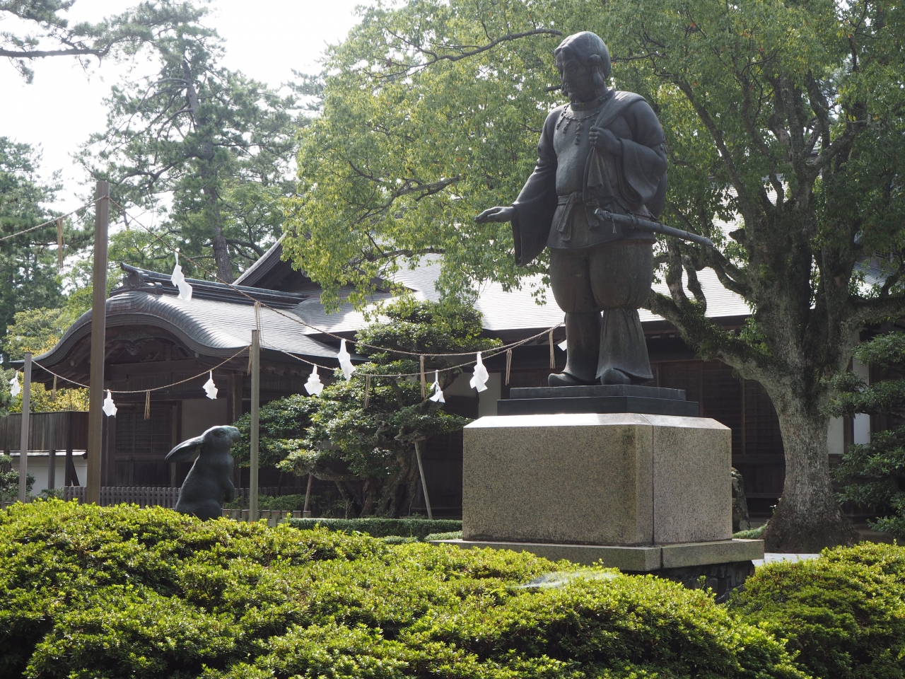 出雲大社の松の参道を歩いてきて、第4の鳥居の左側の手前の広場の場所に大国主大神とウサギの像はあります。神話の世界の話ですが...  続きを読む、因幡の白兎がワニをだましたために、ワニに皮を向かれて困っているときに、大国主大神に助けを求め、助けてもらうという話をあらわしたもののようです。ウサギの像が可愛い感じで、いたずら好き、悪いウサギには見えないです。  閉じる
