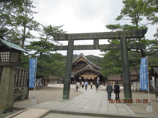 縁結びの聖地ともいわれる大社ですが、数十年前に新婚旅行で来たというシニアばかりでやってきました。一番近くの駐車場から、お土...  続きを読む産物店街を通って最短ルートで拝殿に、杖を突きながら歩いて数分でした。ウイークデーの参拝は、「三密」にはならずに済みました。  閉じる