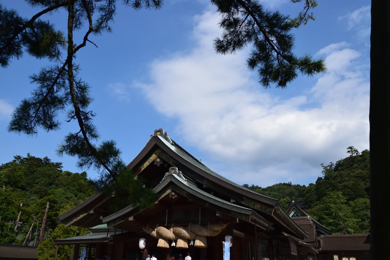 伊勢神宮に並ぶ古社。大國さまとして親しまれる大国主命を奉る。縁結びの神・福の神として親しまれる。1744年に建てられた本殿は、日本で最も古い神社建築の形式である大社造りで、国宝に指定されている。参拝方法が「二拝四拍一拝」と一般の神社と異なる。