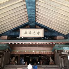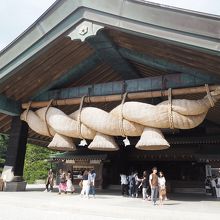 本殿の西側にある御祈祷や結婚式をはじめ様々な祭事行事が執り行われる場所です。なんといっても見どころは正面にあるしめ縄で、長...  続きを読むさ約13メートル、重さ5.2トンに及ぶそうです。見た中でもダントツに大きく存在感抜群でした。  閉じる