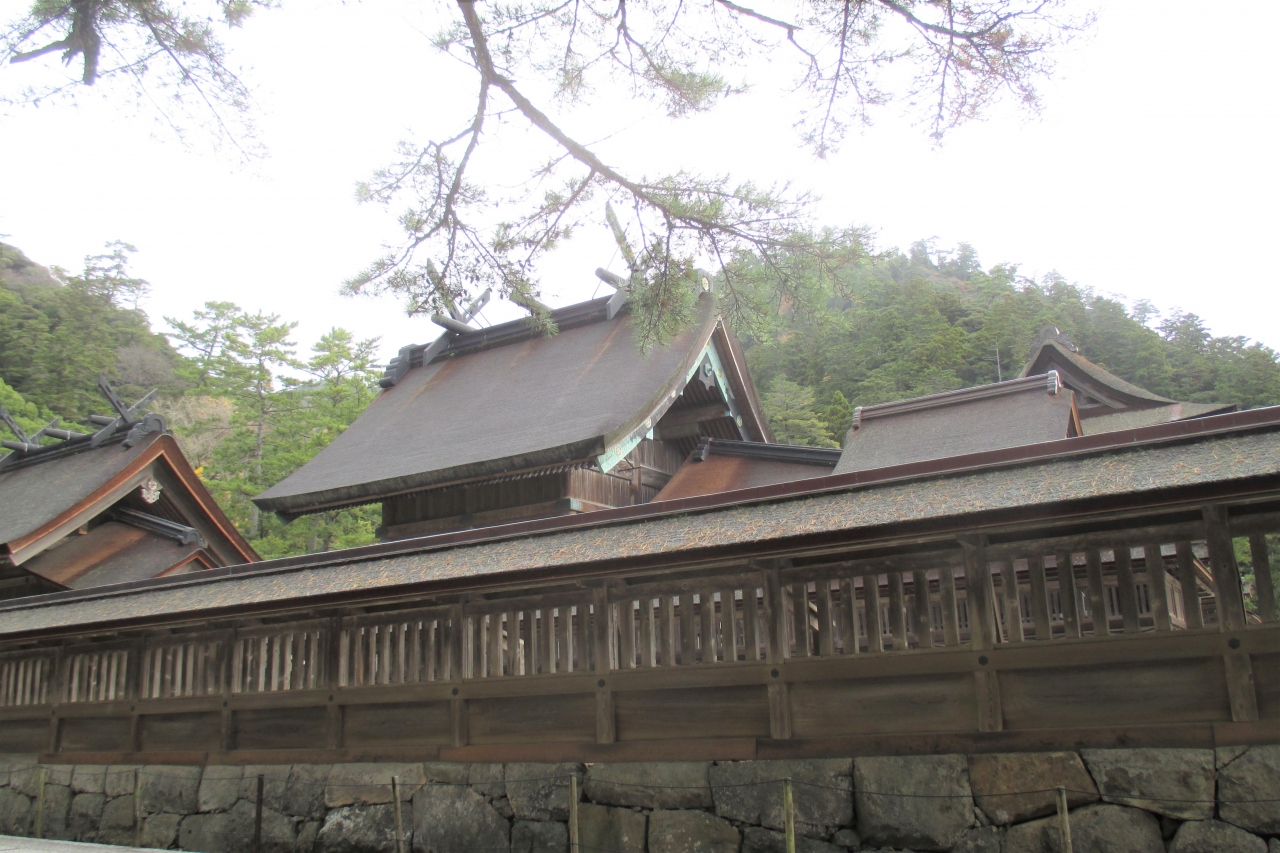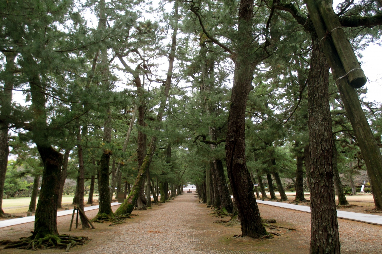 出雲大社は、まずは参道の松並木が参拝の気分を盛り上げてくれますね。寛永年間(1624年~45年)に松江藩主・堀尾忠氏の夫人...  続きを読むだった長松院が、祈願成就の御礼に松の木1、000本を奉納したものだそうです。現在、大きな松を目にすることはほとんどありませんが、江戸時代の木は数10本程度だそうです。御祭神は大国主大神(おおくにぬしのおおかみ)です。出雲大社は江戸時代に2回大きな造営をしています。1回目は寛文の御造営で、1667年(寛文7年)に 幕府は2千貫を御造営費として寄進しました。この時に神仏分離が行なわれたそうです。この時の建物では八足門や楼門、回廊が残っている(解体移築)とのことです。2回目は1744年(延享元年)に行なわれた延享の御造営です。費用は日本勧化と呼ばれた、全国への御造営御浄財の募材活動で賄われたそうです。なお、拝殿は火災に遭い、1959年(昭和34年)に再建されたものでした。  閉じる