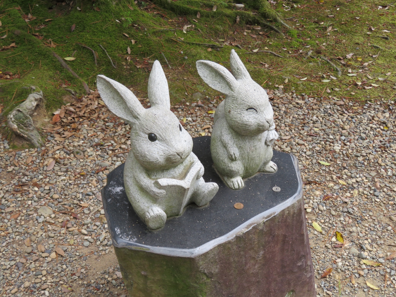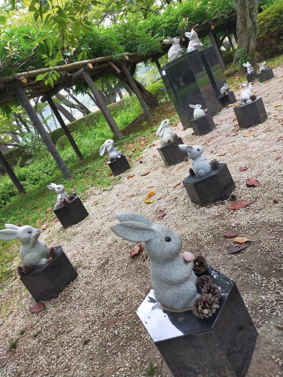 出雲大社、ウサギのオブジェと言っていいのかわかりませんが、かわいいウサギたちがたくさん並んでいて、神社ではない感じの風景が...  続きを読む広がります。ほんとうに可愛くて、松ぼっくりりを誰かがデコレーションしてくれていました。  閉じる