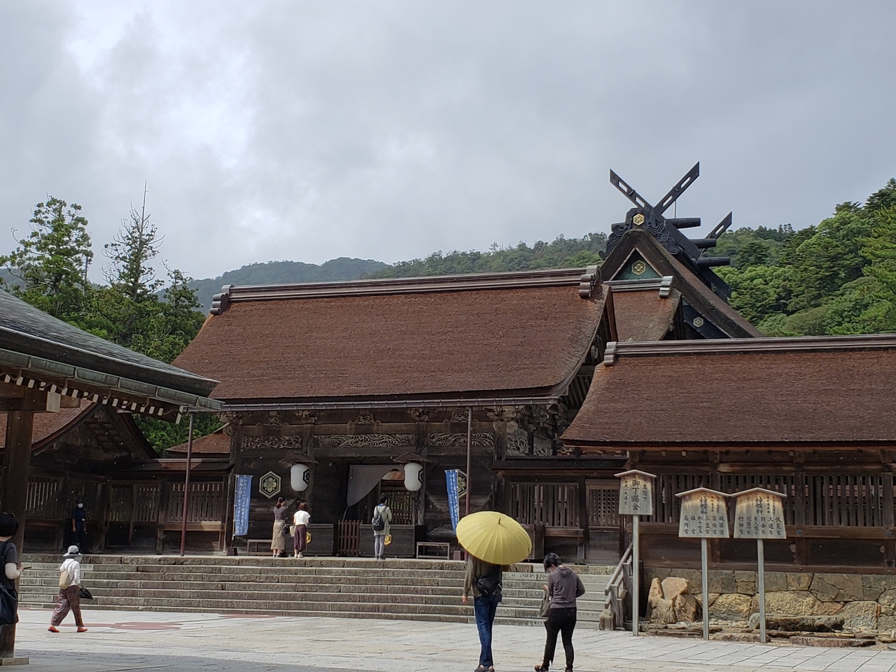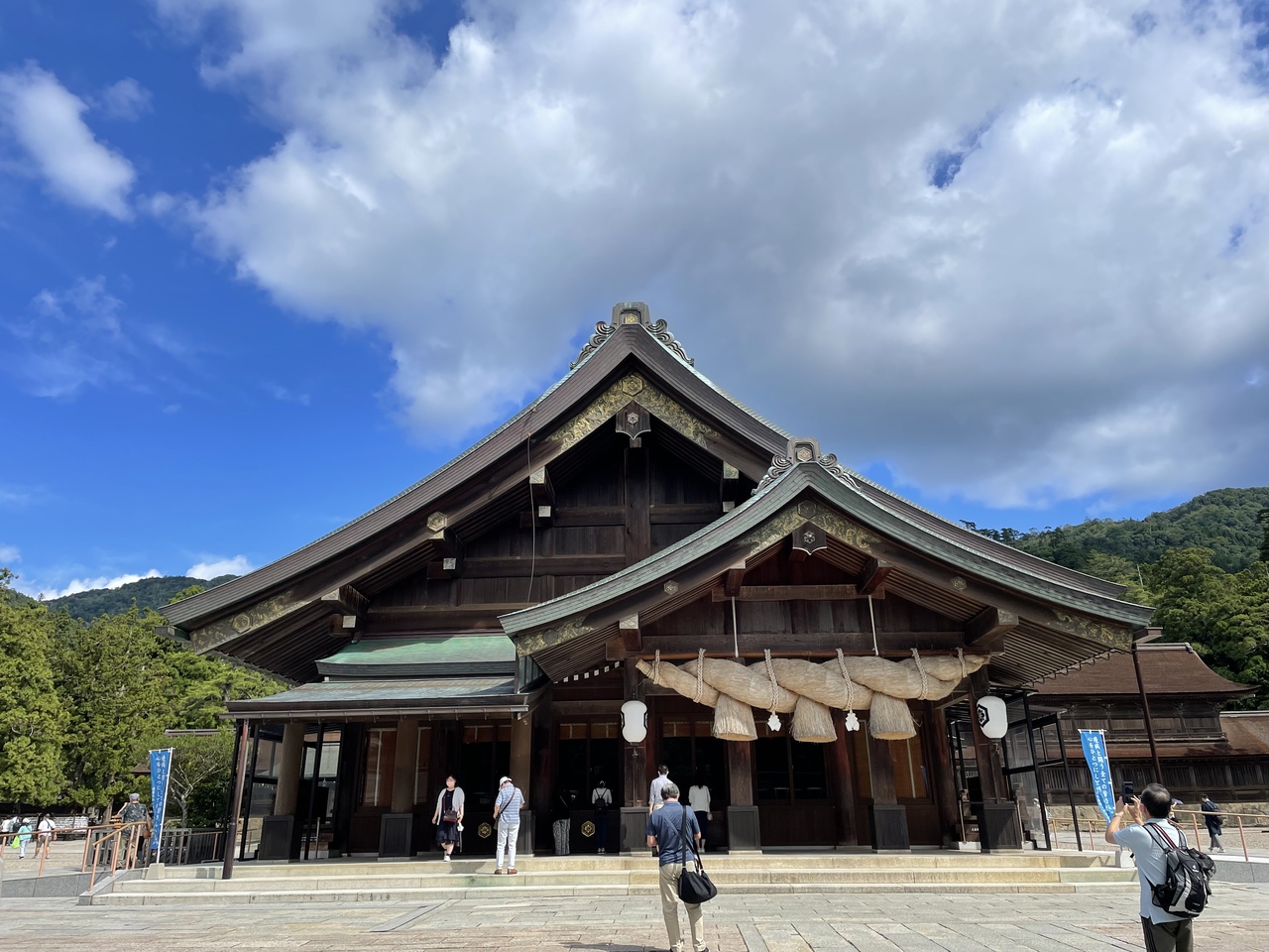 伊勢神宮に並ぶ古社。大國さまとして親しまれる大国主命を奉る。縁結びの神・福の神として親しまれる。1744年に建てられた本殿は、日本で最も古い神社建築の形式である大社造りで、国宝に指定されている。参拝方法が「二拝四拍一拝」と一般の神社と異なる。