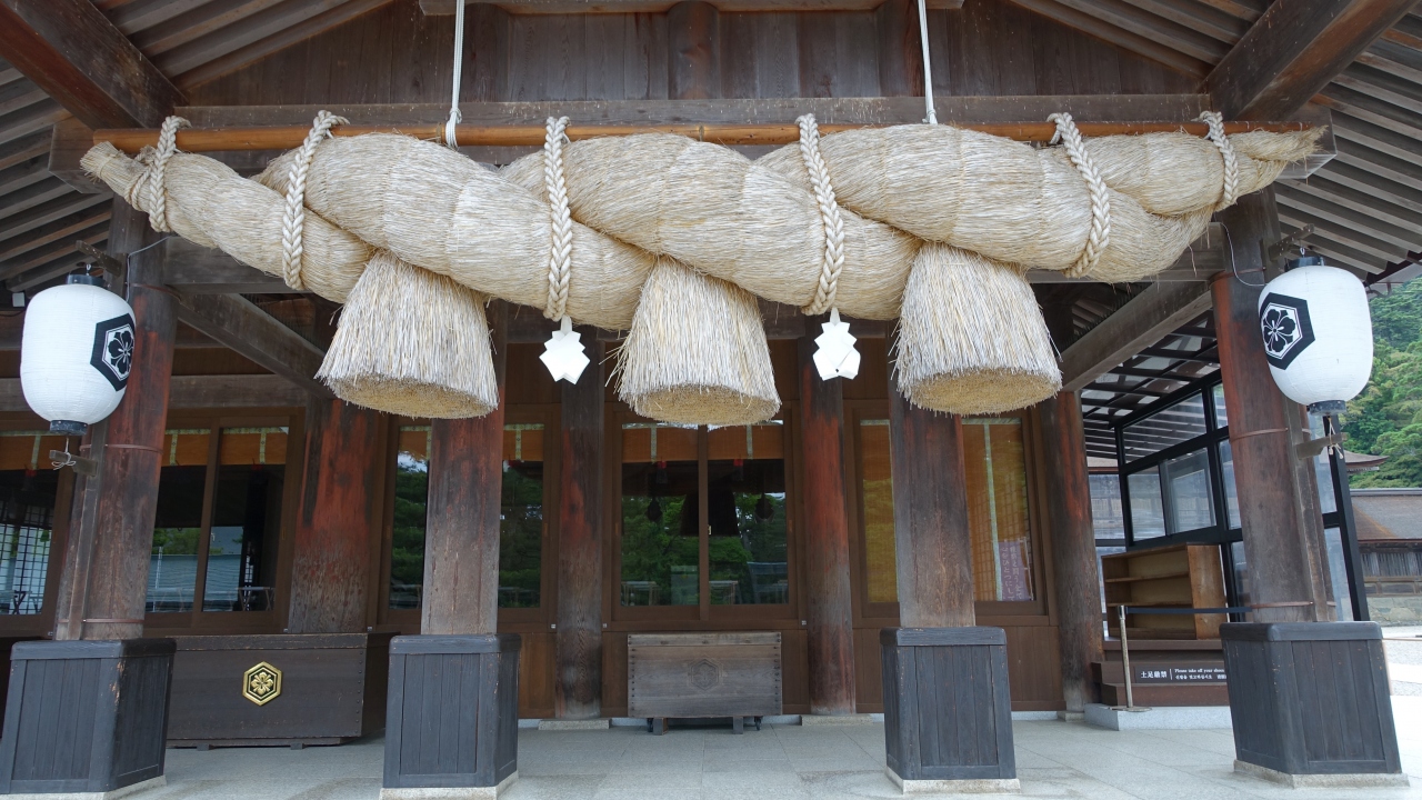 大しめ縄で有名ですが、古い拝殿にあるのではなく、比較的新しい神楽殿にありました。形のバランスがいいのは、拝殿のしめ縄です。...  続きを読む8月末でしたが訪れる人も多く、ツアーの人の解説をこっそり聞きながら、古代の壮麗な姿を想像して見学できました。周辺の神魂伊能知奴志神社なども併せてめぐると、より歴史を感じられると思います。  閉じる