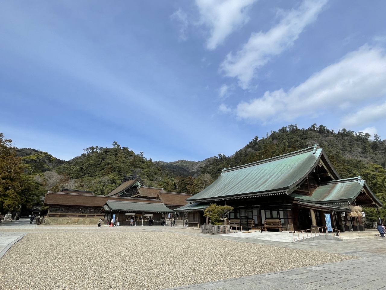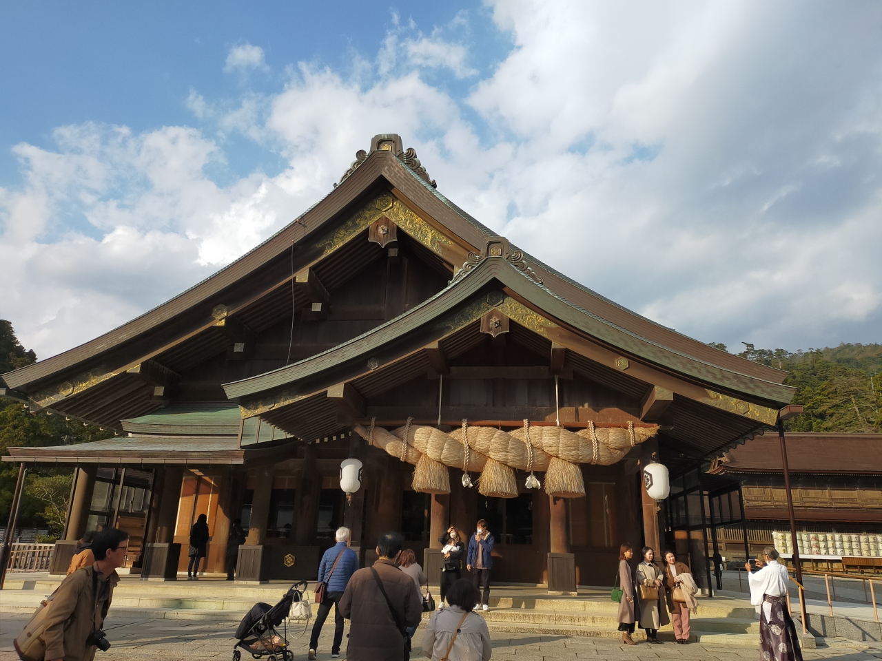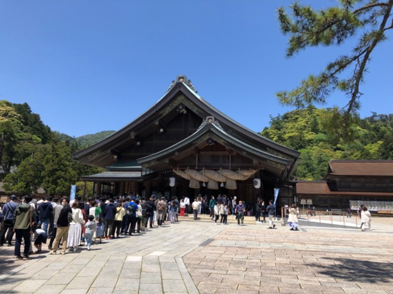 十数年振りの参拝でした。以前は改修中で本殿などすっぽり工事シートで覆われていたので今回初めての参拝となりました。GW2日目...  続きを読むでそこそこの混雑振りでしたが、参拝はスムーズに済ませました。参拝後の食事で出雲そばのお店がどこも行列で、そちらの方が辛かったです。